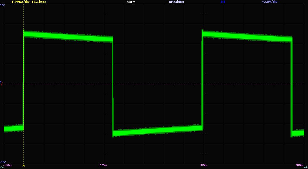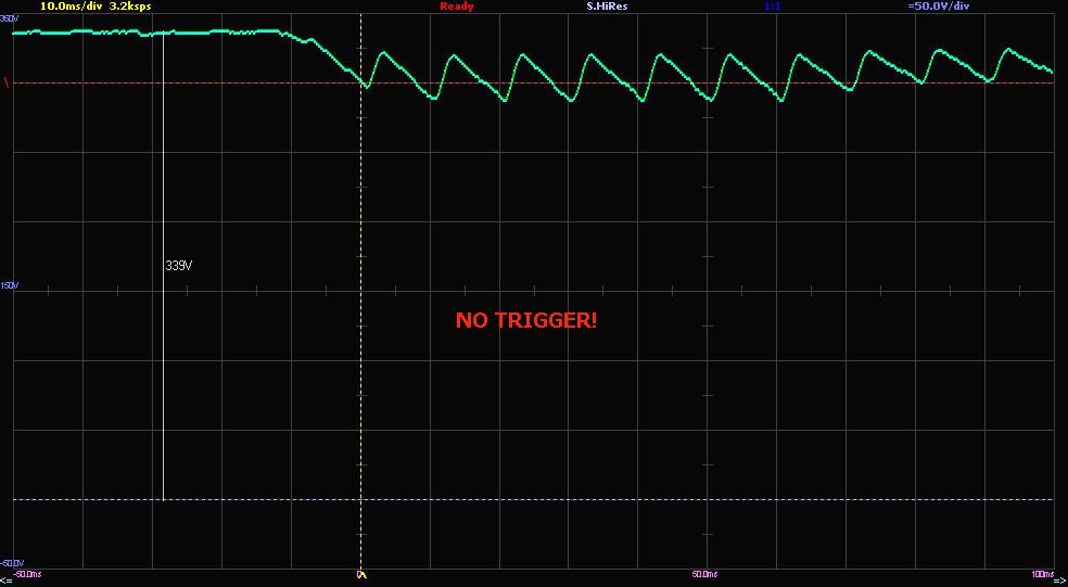 До речі, гарно видно періодичність просадки в 10мс, що якраз відповідає провалу живлення без конденсатора )
