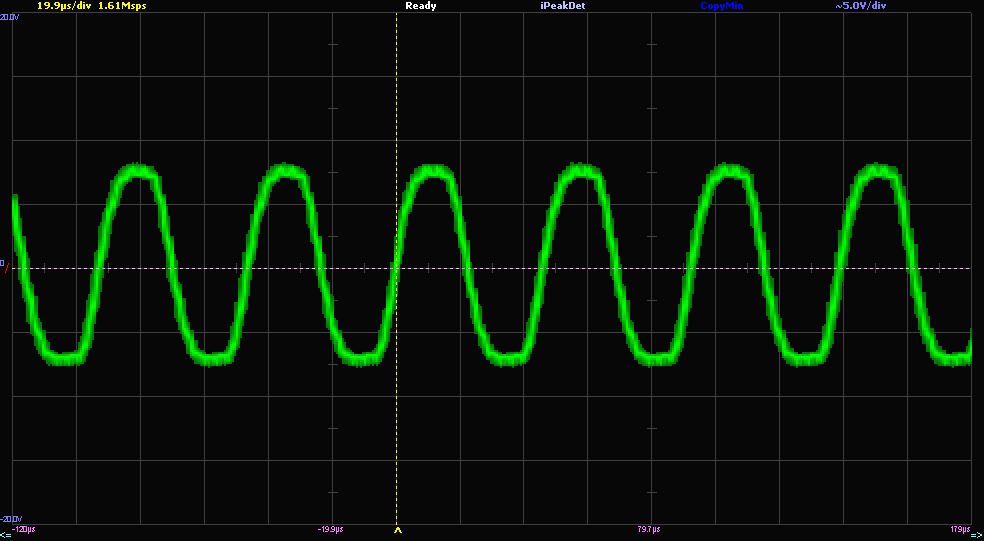Поекспериментував трохи. В принципі, якщо погратись добротністю контуру демодуляції, правильно підібрати снаббер та зарізати спектр вхідного сигналу, можна досягнути кращого меандру. Але технічні характеристики це не впливає в межах робочої смуги частот. Меандр я генерував з допомогою attint13a, так як ддс генератора не маю, а звукова карта не спроможна відтворити меандр. Отже, роблю висновки, що спектрально і по сигнал/шум він вийшов краще звукової. Єдине - трохи гармонік вилазить при наближенні до кліпу, але я їх (ті долі відсотка) вухом на синусі не чую.