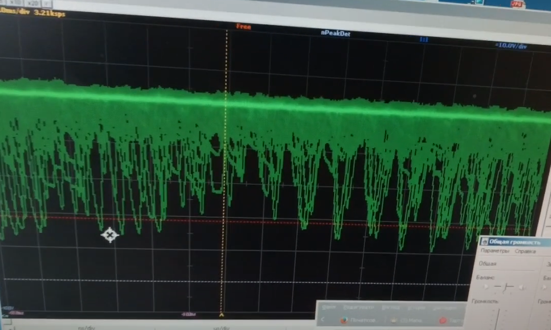 (змушений був вимкнути пікове вимірювання, бо багато шумів пролазило через самороьний дільник до осцилографа без компенсаційного конденсатора)