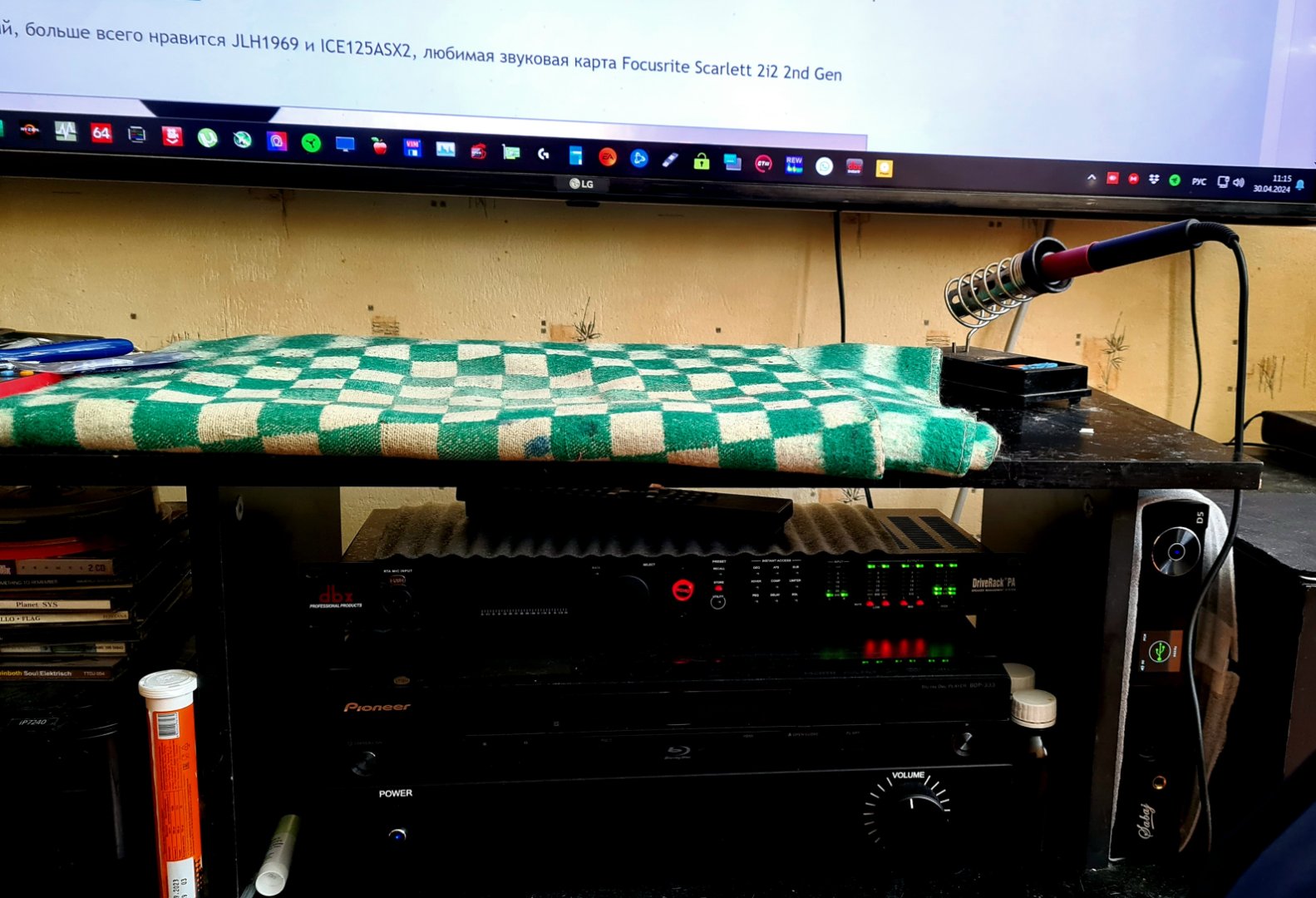Мав дуже цікавий досвід зі звукоізоляцій- поглинаннь, розсіювання в ближньому полі за мікрофоном і проч. Та банально навіть навушники для наскрізного моніторингу, що на фото на стійці - "Аудіотехніка Арт Монітор", довелось переробляти, змазавши всі шарніри і проч восковою змазкою для вело, бо вони на голові ледь чутно скрипіли, а втім в мікрофоні це був вже відчутний грохот, бо мік на дистанції 15см робив, в т.зв., "інтимній зоні", для речевого запису, коли навтіь гланди чути