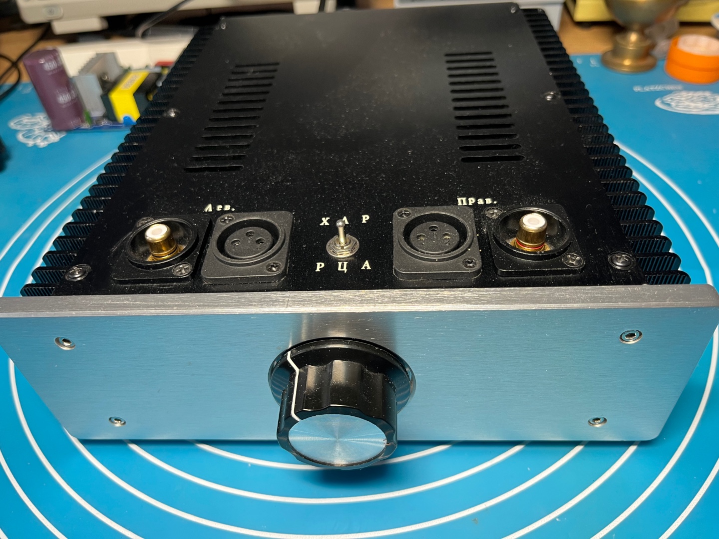 Завдання боло зібрати з двома входами RCA та XLR, а так як корпус має не великі розміри, і ще не було бажання проводити сигнальні проводи біля блоку живлення, тому прийнято таке рішення.