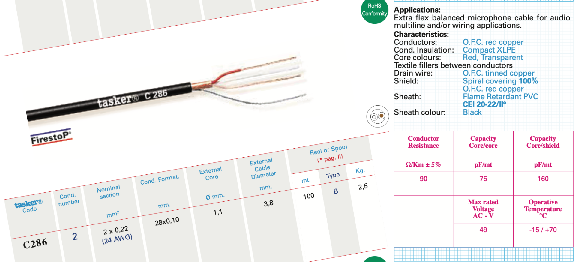 Вот такой. На сайте производителя написано: Twisted balanced microphone spiral shielded O.F.C. cable