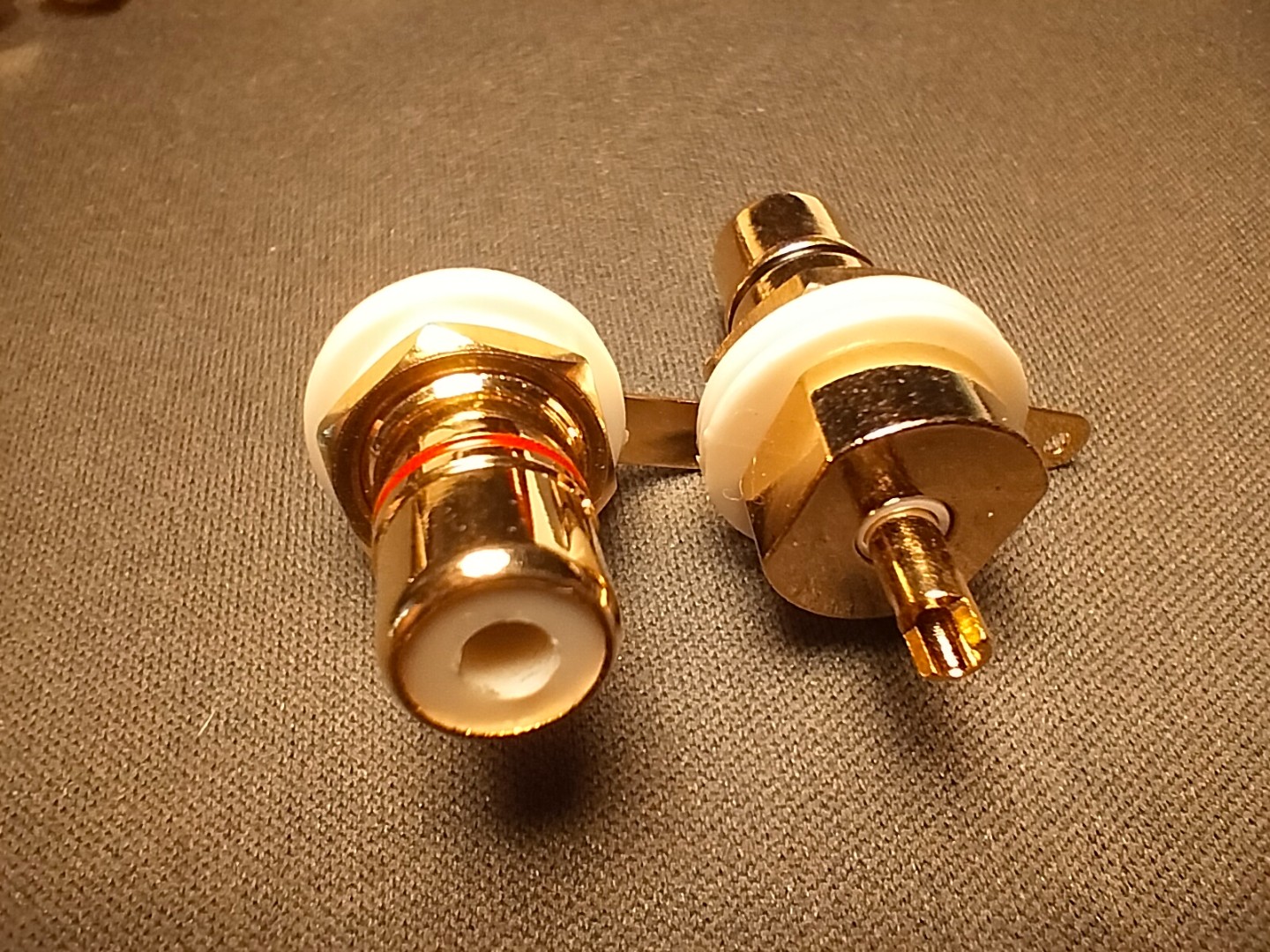 Продам аппаратные гнёзда RCA, OEM. В наличии три пары, две новых, одна б/у (подключались для проверки). Коннекторы качественные, позолота. Цена указана за пару.