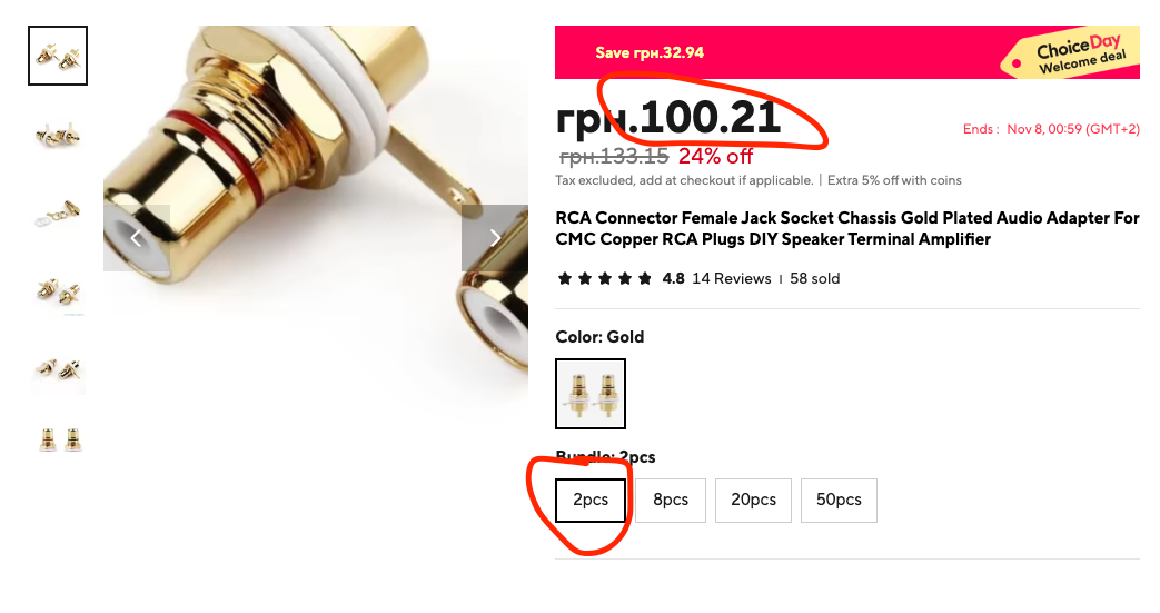 Предновогодняя распродажа по 300 грн. за пару качественных RCA гнёзд!