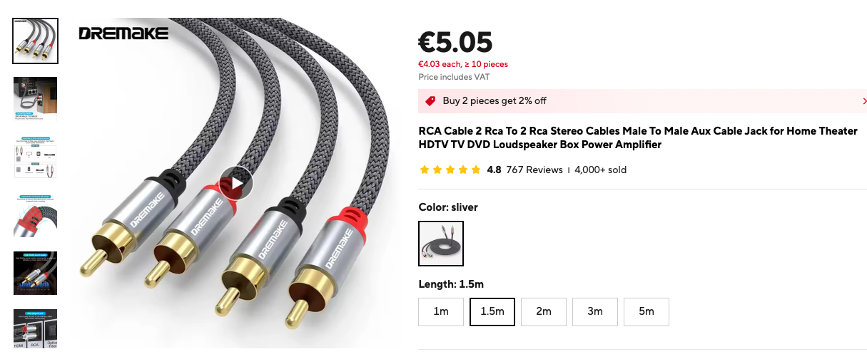 А ось такий кабель - повне фуфло, не дивлячись на ціну. Візьмеш в руку і через "єкран" пролазить 50 Гц. Хоча я маю і добрі кабелі з Алі.