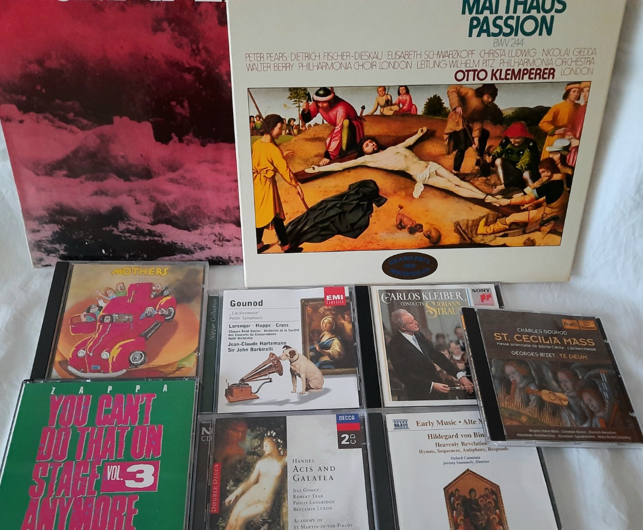 Дружина поки сидить в Бонні. Десь з місяць назад йшла в магазин, бачить - хтось виставив коробки з вінілом і сд просто на дорогу - типу "беріть, мені вже не треба". Вона мені скинула фотки з вмістом тих коробок і я почав її благати взяти хоч що-небуть. Там була в основному класика, і трохи Заппи. Дивна суміш, але це якраз те, що мені подобається. Упросив її взяти що зможе, і ось сьогодні це все у мене. Вініл нульовий, сд теж. Кайф!!!