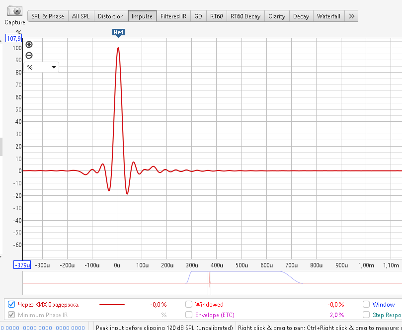 Спасибо за советы,я пересниму для англоговорящей аудитории,там я учту момент с кроссовером и наверно обойдусь без эквализации нч динамика,у меня единственный вариант найти более менее правильную задержку по времени,это несколько раз измерить нч и вч динамик 0-24khz потом оставить измерения которые максимально совпадают и выставить таким образом задержку,идеально конечно не получился это сделать,но идеального в мире ничего нет.uriy писал(а): 10 дек 2024, 00:36 То что вы находитесь во вкладке импульс, ещё не означает что вы на картинке видите именно импульсную характеристику.