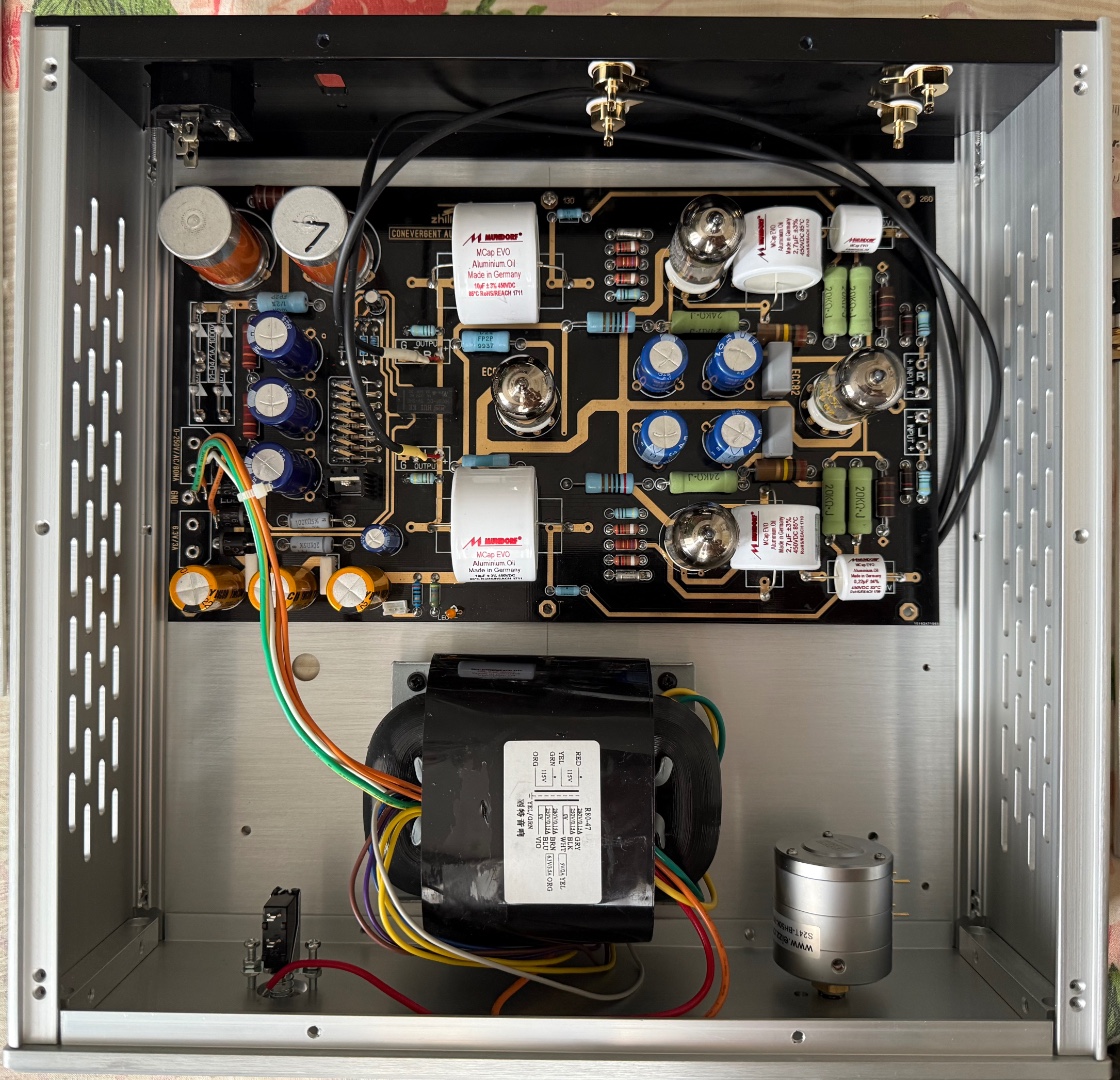 Вижу, Вы приобрели готовый вариант (плату). Если ветку читали, то у меня выбраны немного иные номиналы резисторов (на радиолампах ecc83).