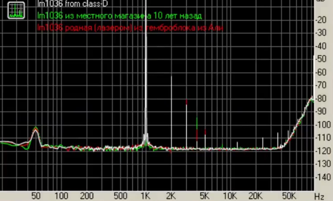 ну и самое смешное на последок. Копеешная LM1036, которая хоть и не кошерна для обладетелей усилителей с невероятными показателями, тем не менее тоже дает искомый эффект. Можно выставить АЧХ в ноль и даже просто замыкать вход с выходом для директа. А можно и порегулировать чего. Ну хоть кнопку тонкомпенсации оставить. Неважно. Главное на графике.