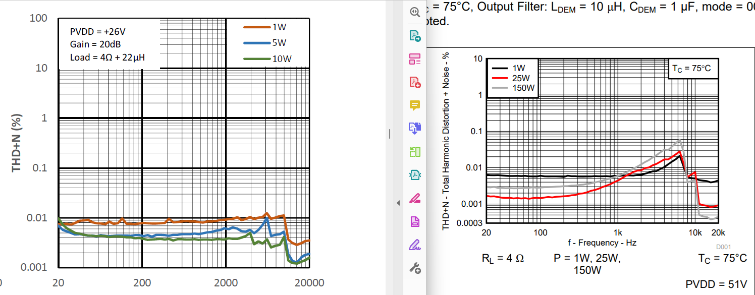 lgedmitry писал(а): 24 апр 2025, 22:41 Я не знаю, как там силовой выход реализован. Но кажется мне, что таких показателей Кг без ООС добиться трудно. Слева - картинка из даташита МА12070, справа - ТРА3255. Первая явно лучше на ВЧ. А вторая внутреннюю ООС точно имеет.