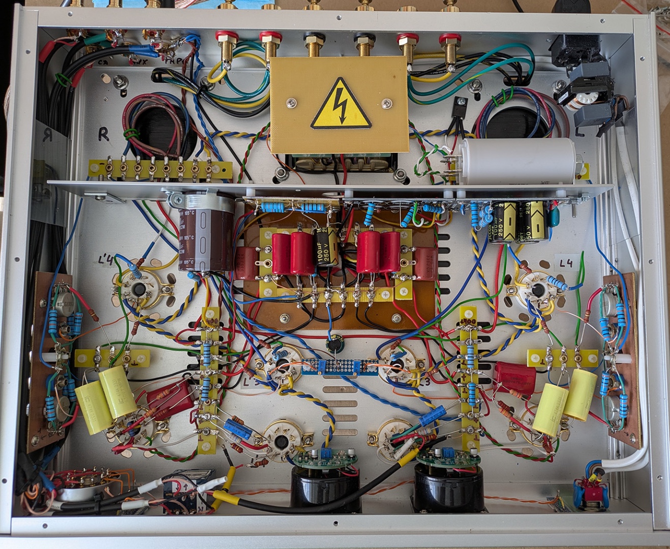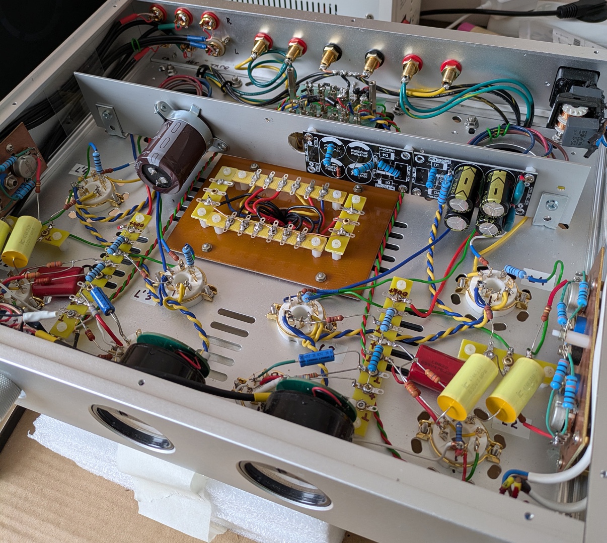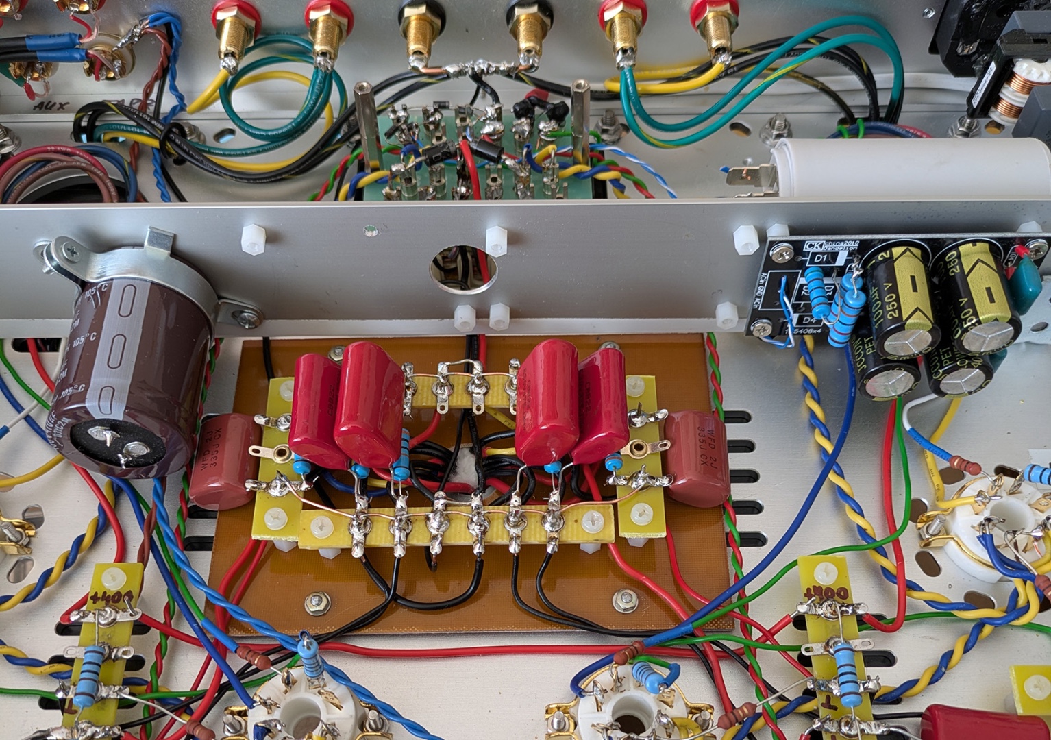 Поставив стандартні конденсатори на вихідних клемах (до електролітів по 10 см 1 мм провода). І ще 10-15 см до точок живлення. А от в катодному колі пробував ставити, так вилізли всякі "цикання і пшикання". Причому конкретно. Зараз стоять вішай (послухаю як звучатиме). Але на приметі є рубікони які гарно звучали в попередній версії.Adam писал(а): 23 май 2025, 12:20 Пріснопам'ятний Губін теж рекомендував в своєму трьохламповому шунтувати електроліти плівкою. Це конденсатори С1, С4. Хоча б лавсаном. Я так і зробив. Погіршення звуку точно не відбулося. А ось в катодах вихідних ламп шунтування поліпропіленом 1 мкФ дало якусь синтетику. Там краще залишити якісний (можна навіть аудіофільський) електроліт.