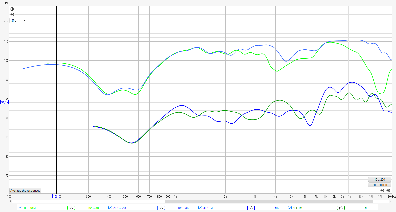 На даному етапі зробив ось такі заміри в моно режимі за допомогою REW, сигнал – свіп 20Гц-20кГц:
