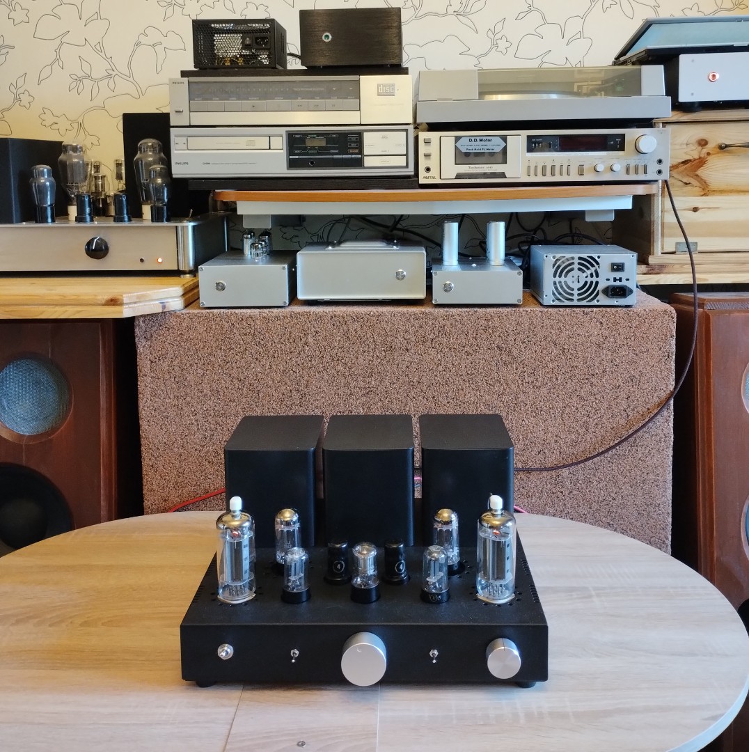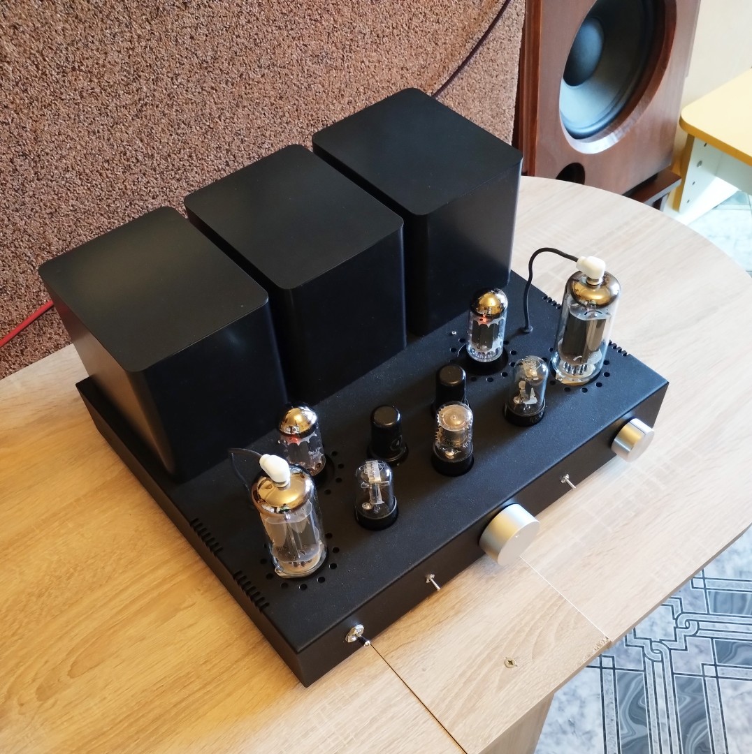 Продолжая эксперименты с лампами выходных каскадов блоков строчной развертки, был сделан усилитель на лапах 6П45С.