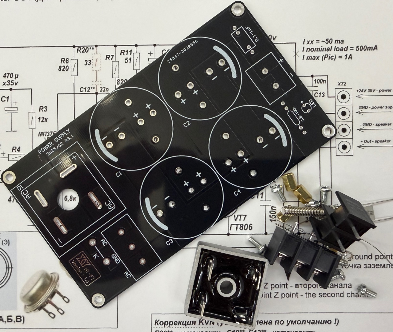 Конденсаторы приобретались тут уже по месту, ну и собственно готовый вариант