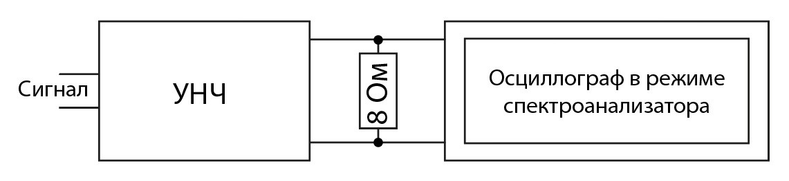 Скажите, почему нельзя измерять параметры усилителя (АЧХ, КГ и пр.) осциллографом в режиме спектроанализатора прямо с нагрузочного резистора по такой схеме?