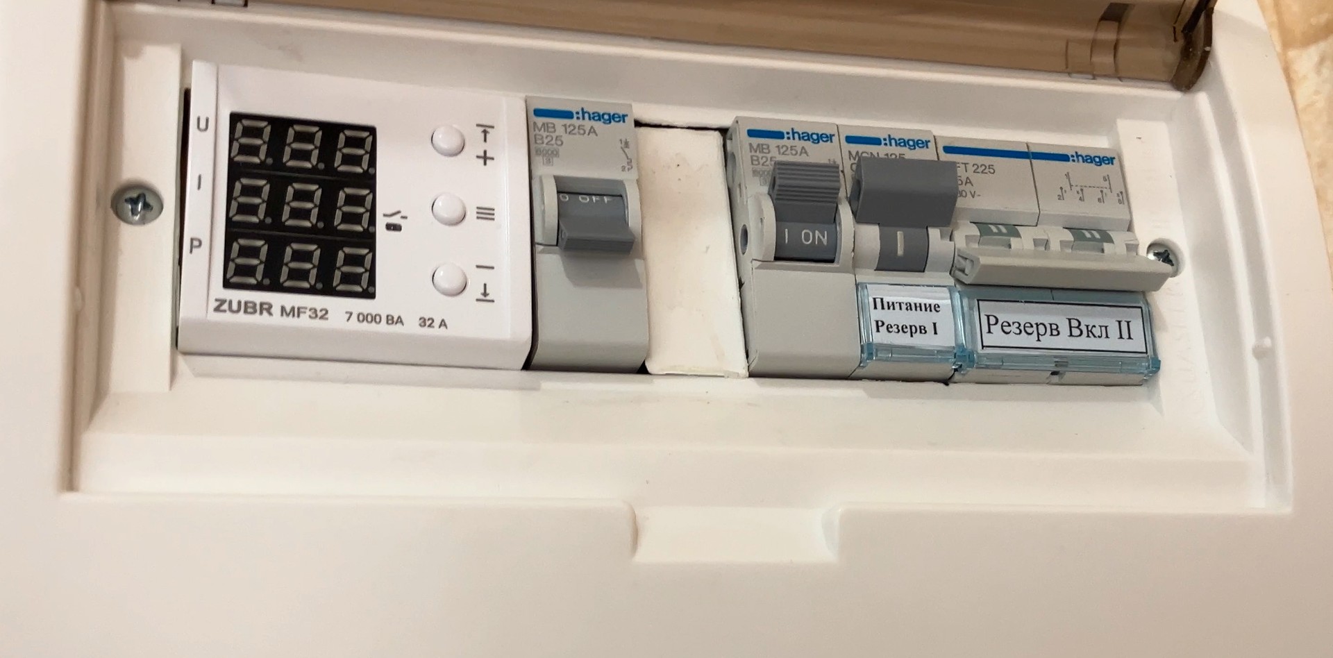 Систему подключил через щиток с возможностью ручного переключения между городской электросетью и инвертором. Это удобно: если свет не вырубают — инвертор отдыхает и ждет своего часа.