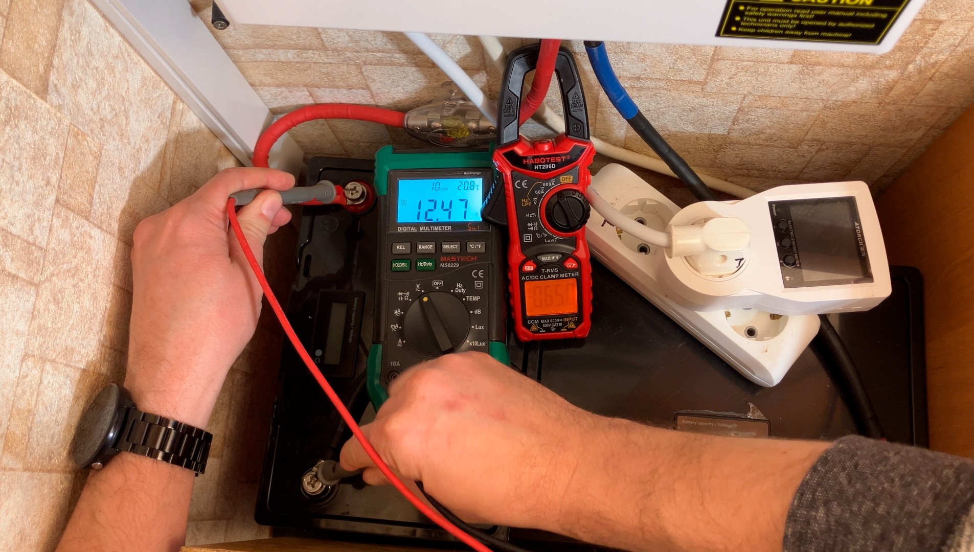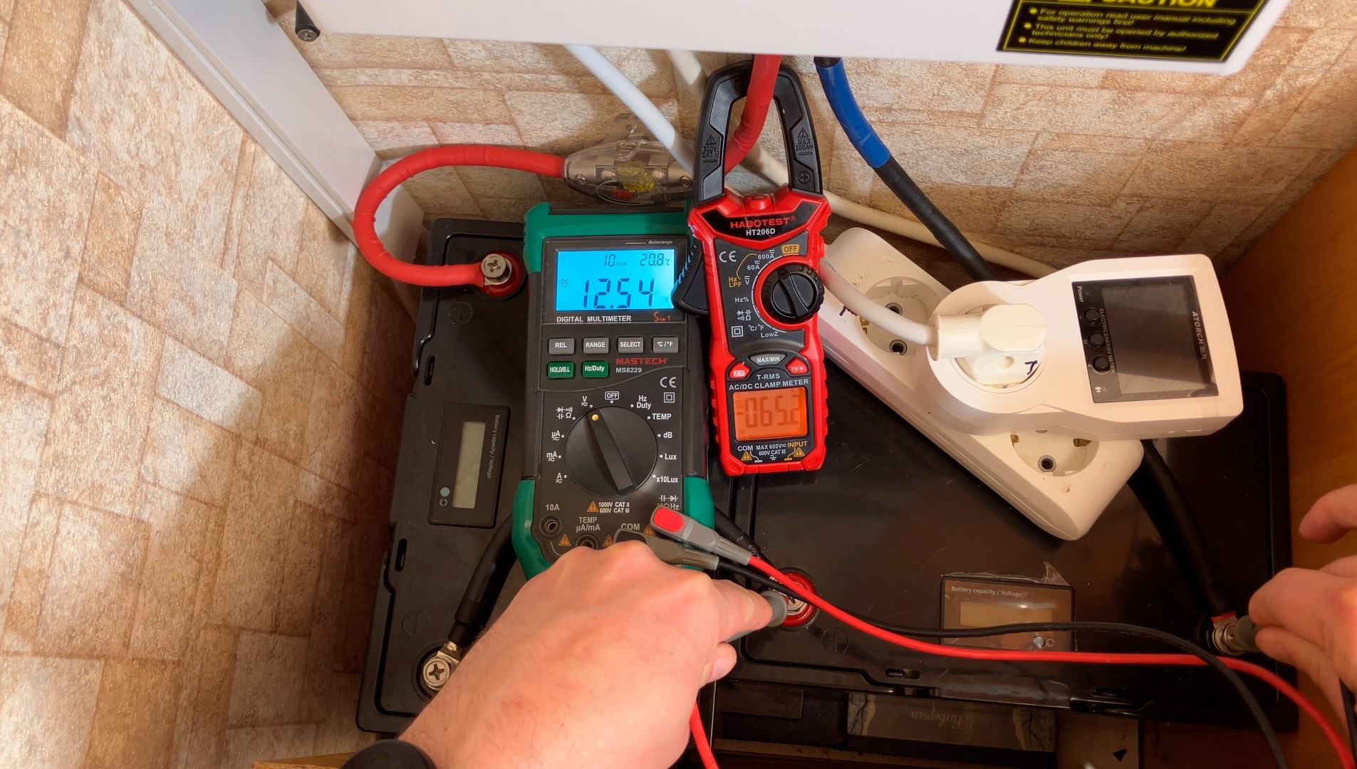 Зарядил акумуляторы до 28 Вольт и дал поработать системе около 7 часов — посмотрим на балансировку аккумуляторов без балансира при нагрузке 65А