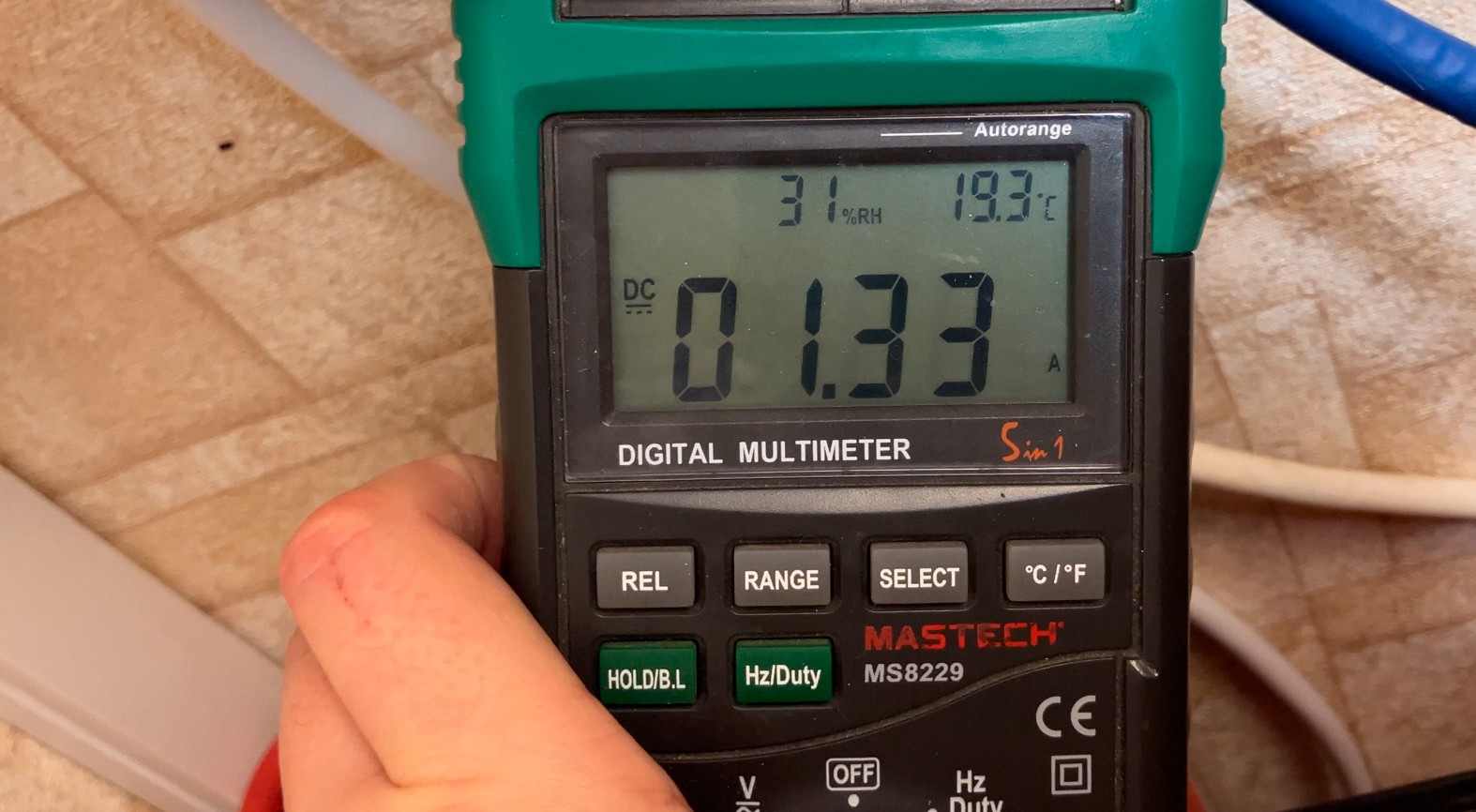 Инвертор потребляет ток 1,33 А от аккумулятора с напряжением 26 Вольт без подключённой нагрузки, при выходном напряжении 230 В. (потребление в холостом режиме 34,6Вт)