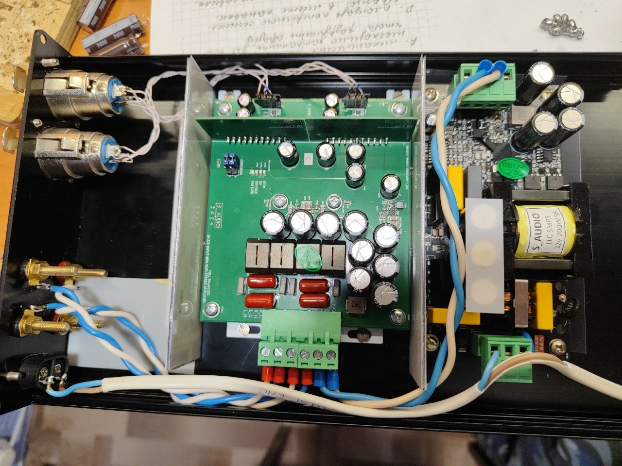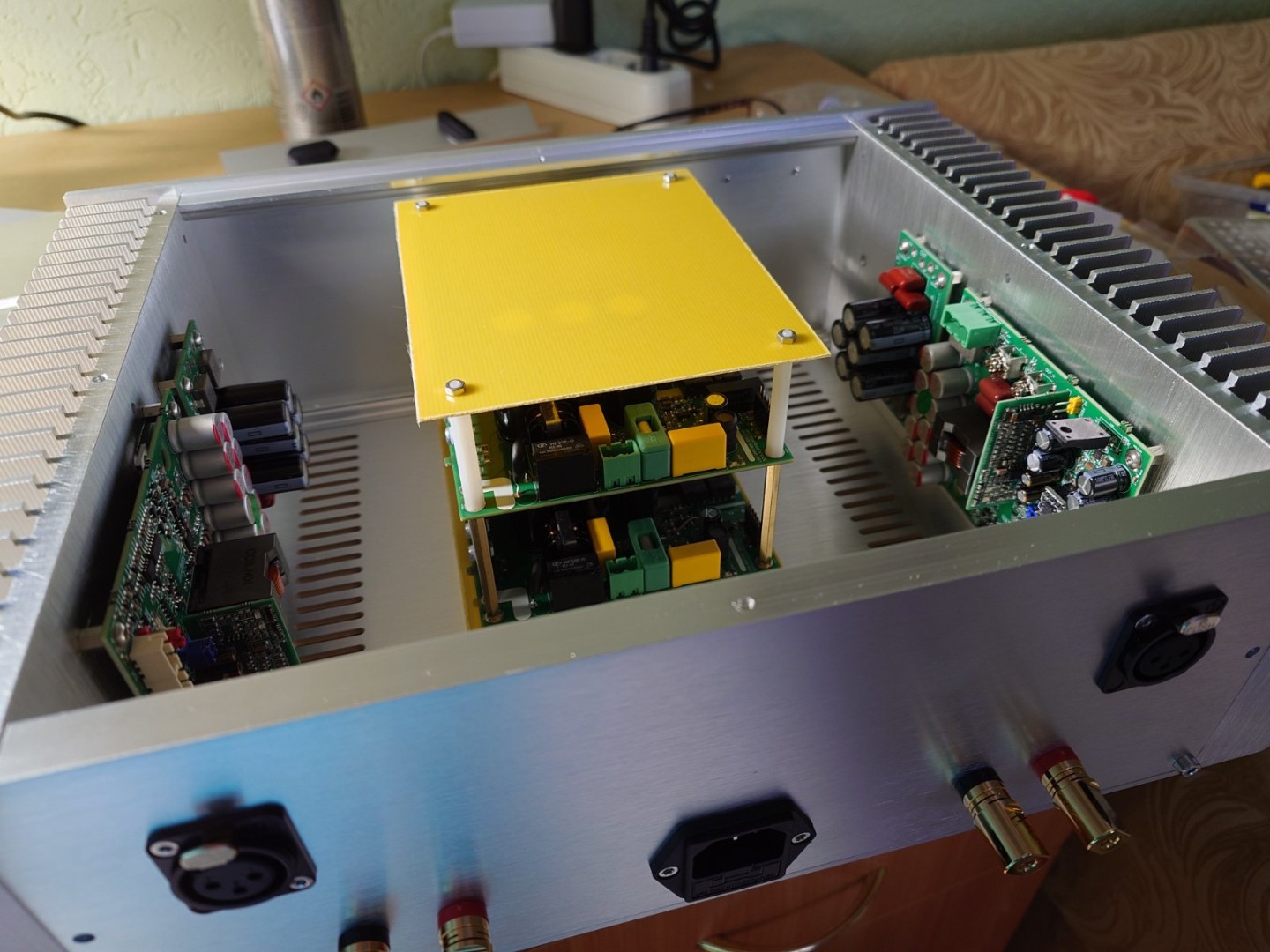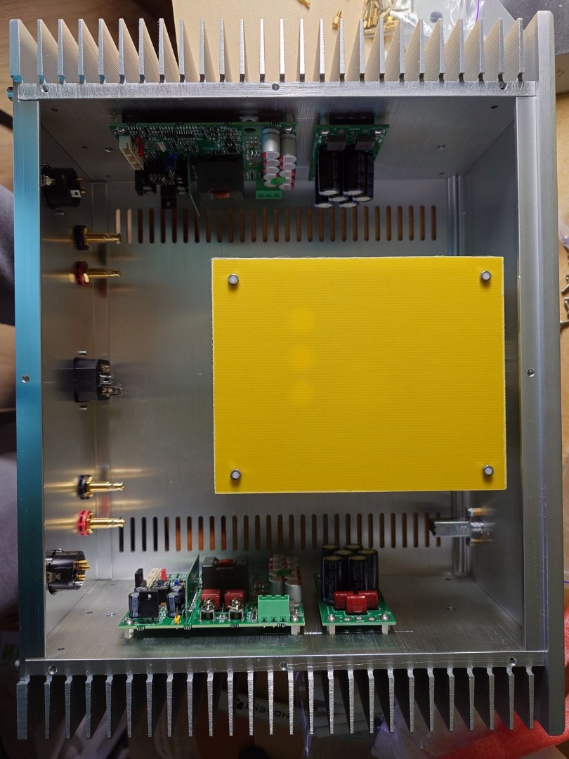 В процессе Purifi 3.13 + 2 х 900 SMPS + 2 х CAP-буфера (все от Юрия sous), вариант мощника в двойном моно и без крутилок, вход XLR: