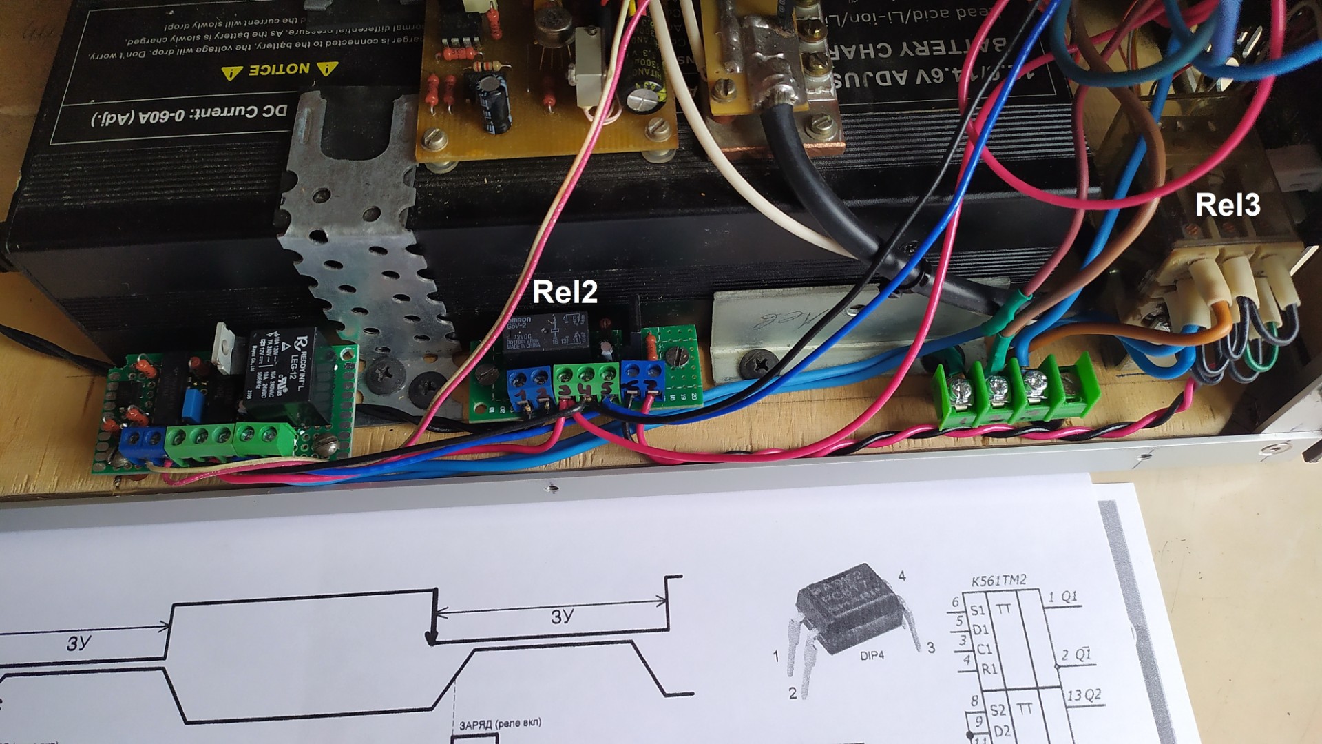 Также отключается Rel3, его контакты К3 переключают зарядное устройство на домовую сеть.