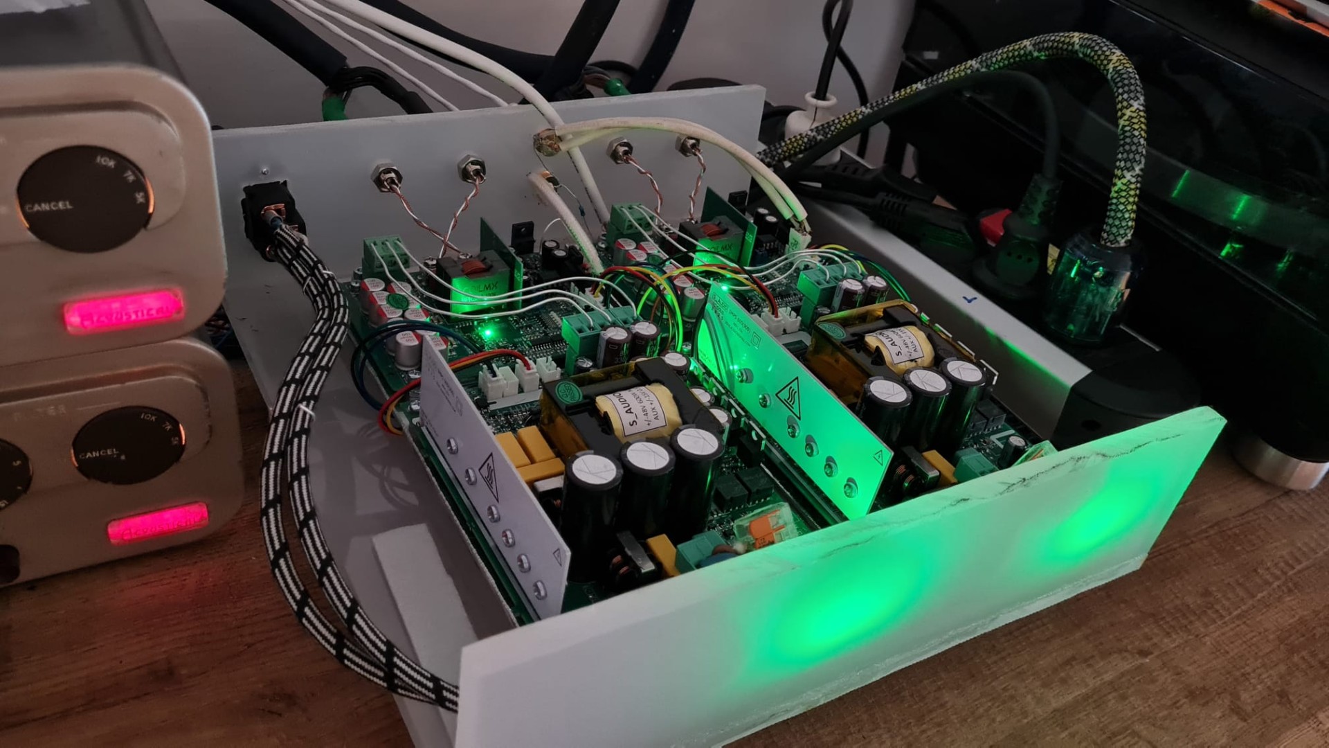 В процессе Purifi 3.13 + 2 х 900 SMPS + 2 х CAP-буфера (все от Юрия sous), вариант мощника в двойном моно и без крутилок, вход XLR: