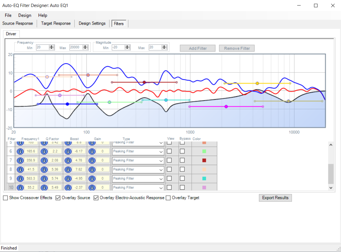 ПО позволяет видеть график АЧХ до и после коррекции, а также вручную изменять параметры звука в реальном времени.