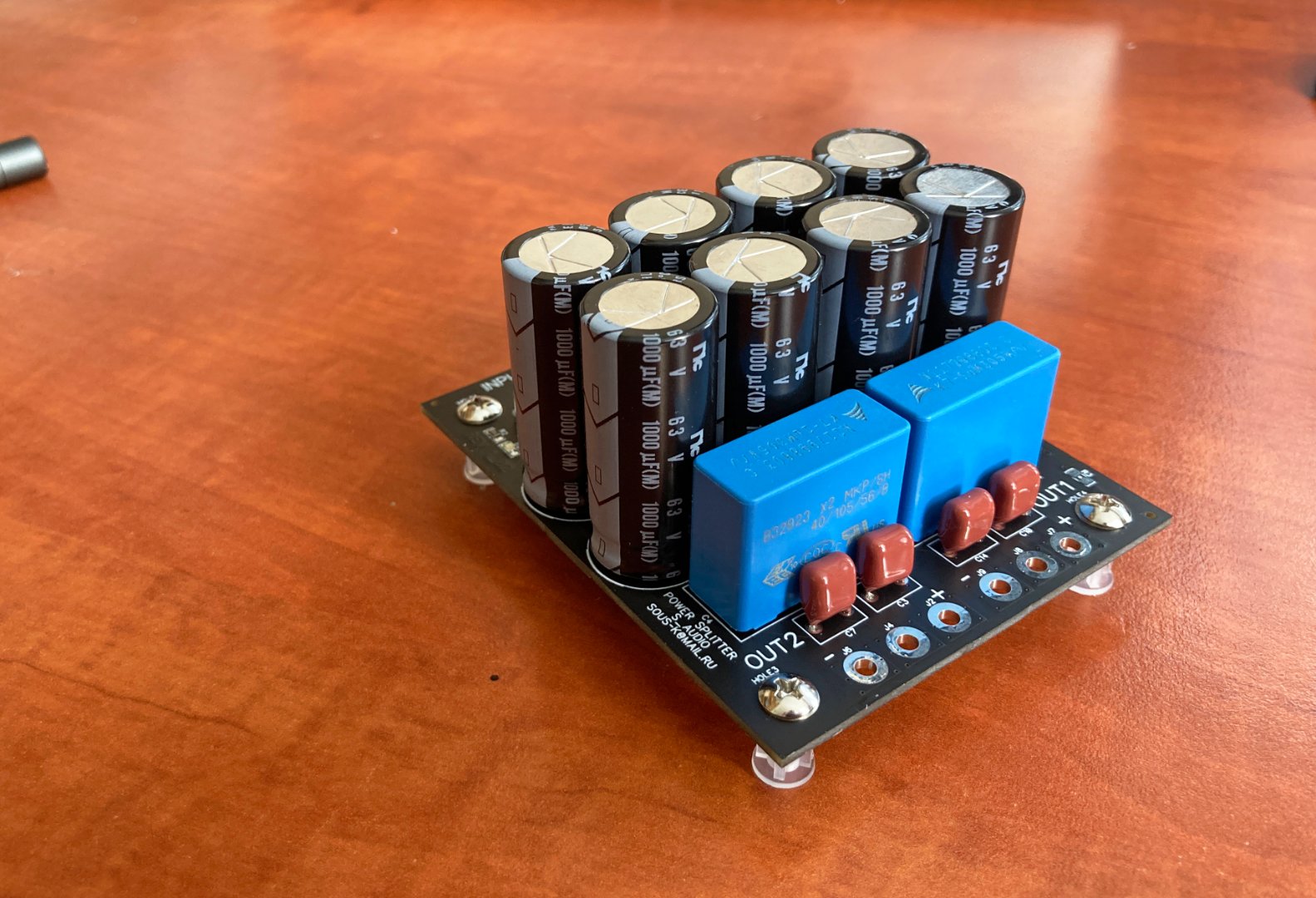 Сегодня Юрий прислал мне такую платку сплиттер, поставлю ее в свой nCore 2_050 и посмотрю, как оно будет звучать. На плате фильтр и 8 конденсаторов по 1000mF