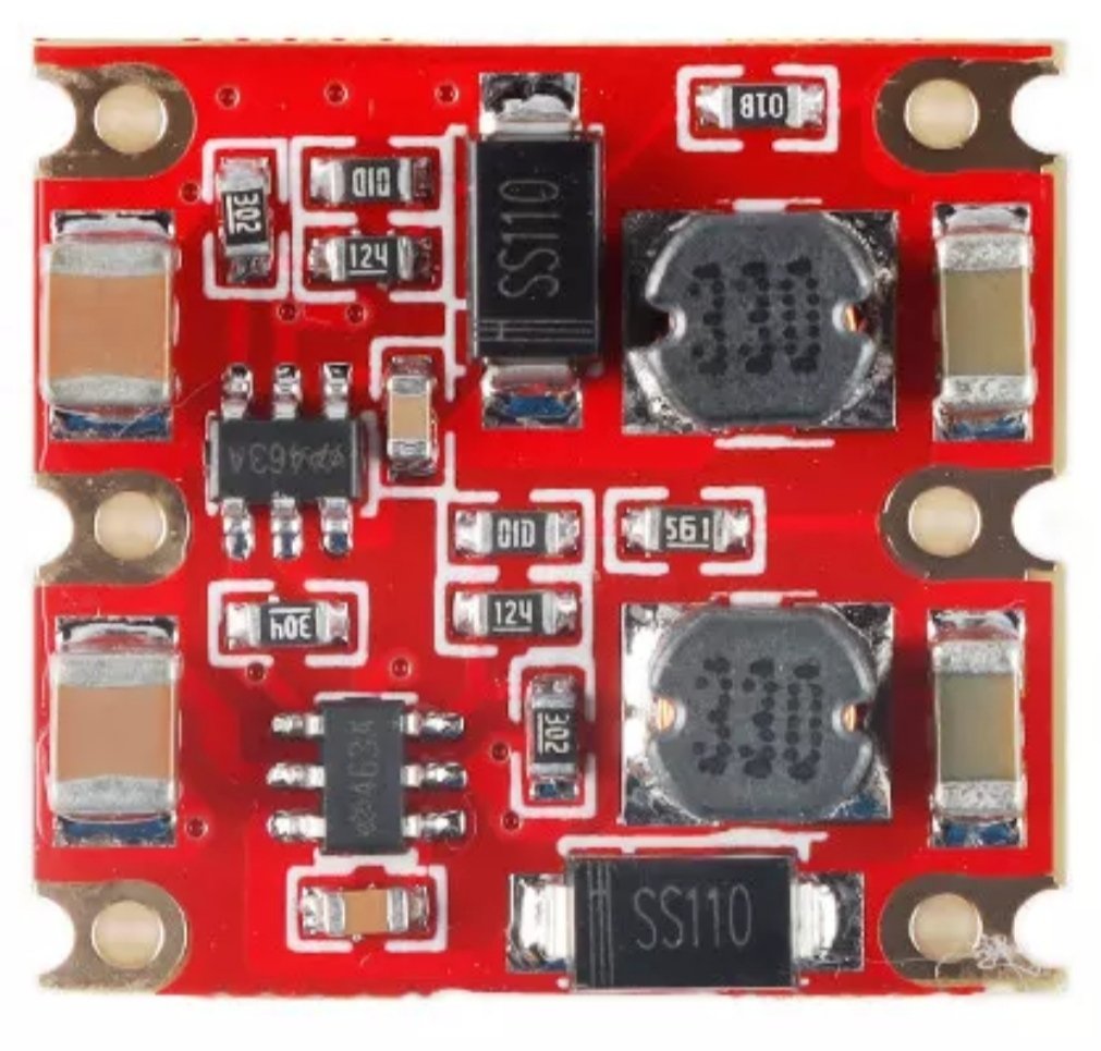 Так плата и есть dc-dc step down которая с однополярного делает двухпорярное и настраивается на нужное напряжения сменой резисторов! Плата на микросхемах HT7463A. С завода стоят конденсаторы на входе 10мкФ керамика аналогично на выходе 47мкФ .