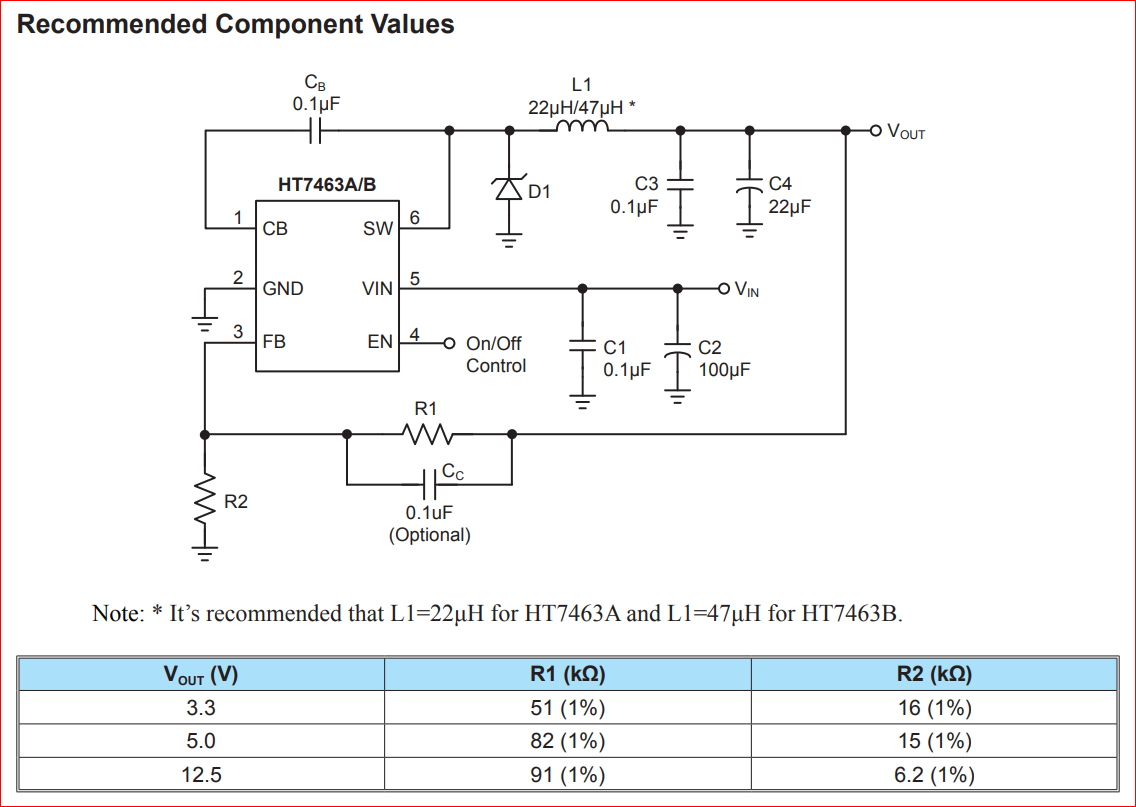 Для HT7463B рекомендуют 47uH и только потому, что её частота в 2 раза ниже HT7463А.