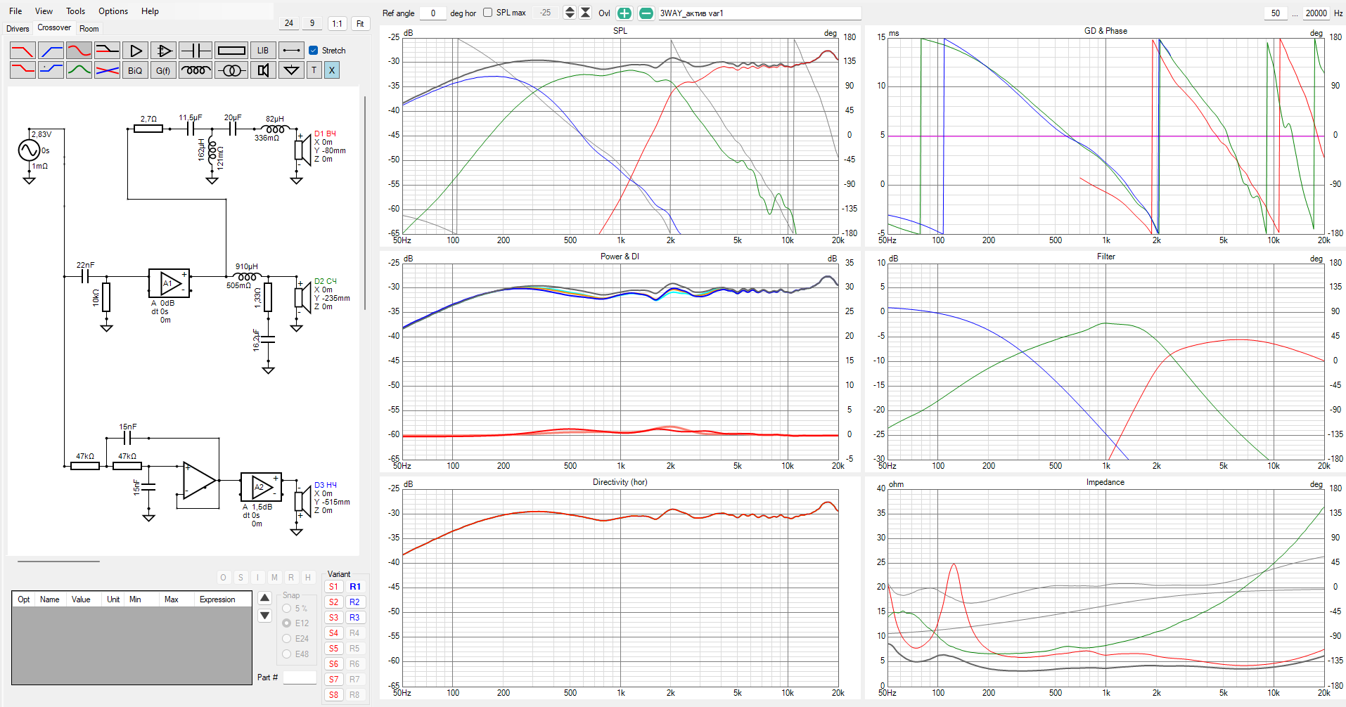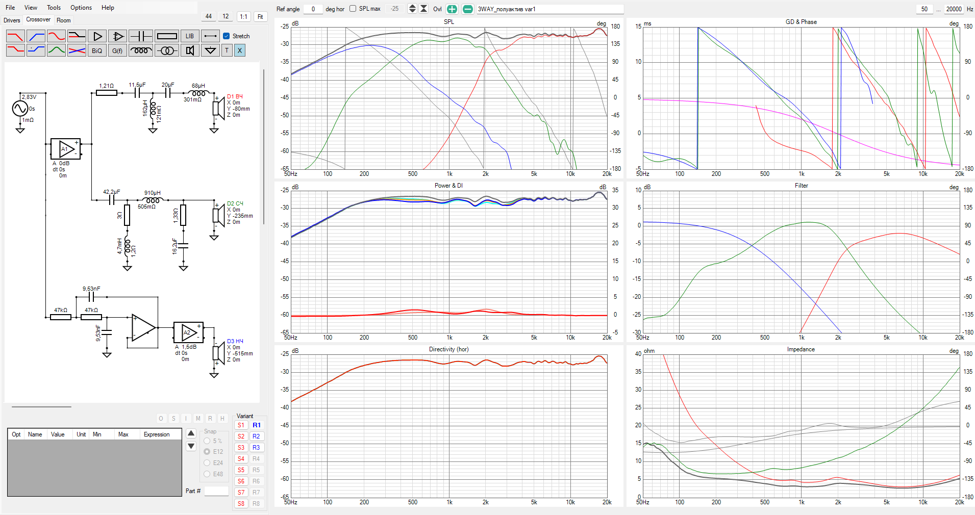 Поигрался с Vituix, затянув в неё файлы SPL и импеданса когда то измеренных динамиков.
