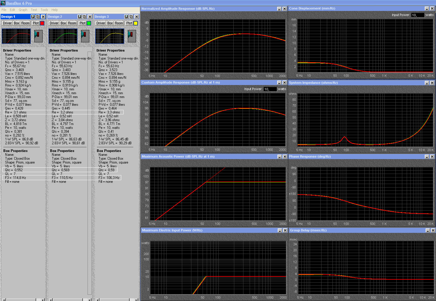 Но если параметры получившиеся с разным Re, забить в любой бокс-симулятор, то отличия в характеристиках бокса, будут минимальными. Звукопоглотитель (влияние которого не поддаётся расчёту) внесёт больше изменений.