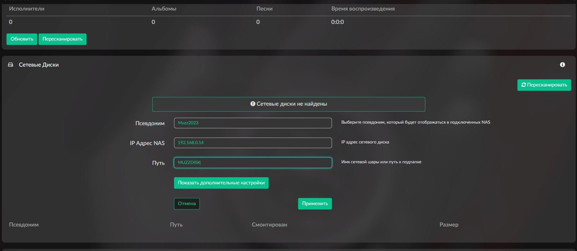 Здравствуйте всем. Есть некоторая проблема, Volumio не хочет монтировать сетевые диски. Сетевой диск находится на винде, с любого компа или ноута в сети видится без проблем, а volumio выкидывает ошибки мне не понятные. Какие в этом есть подводные камни? Подскажите кто сталкивался. Спасибо заранее.