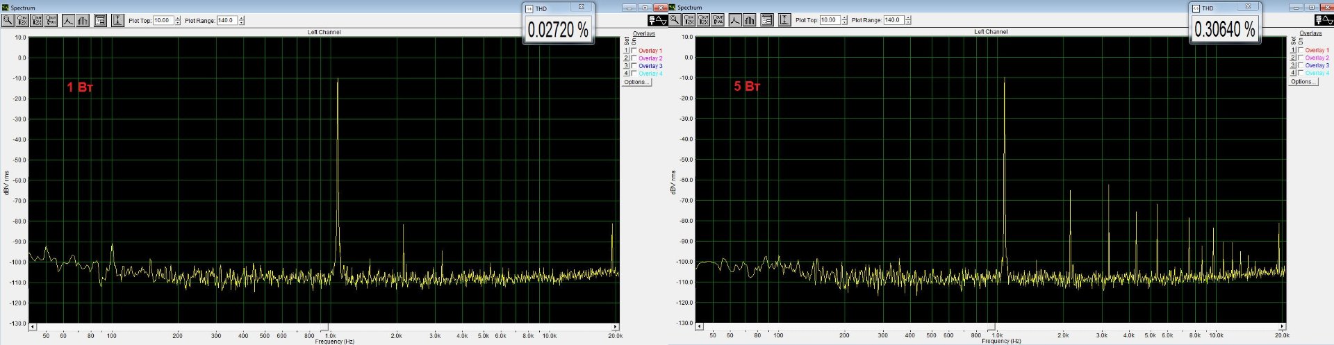Видно, що на 1 Вт все досить непогано, а от на 5 Вт - "йолкі-палкі, лєс густой..". Ну в автора був майже той результат, так що екскремент вийшов вдалий ;) . А звучання на цьому 1Вт (а переважна більшість адекватного населення на ньому і слухають) досить цікаве. Що вирізняє його - це більш натуральні тембри. Особливо примітно це на класиці. Що не вистачає? Хотілось би більшої прозорості (детальності). Звук на струнних якись "зернистий". На лампі цього не має - там все прозоро і плавно. Можливо вхідний конденсатор все приторможує. Зараз там стоїть поліпропілен від Панасоніка. П605 можна замінити на П608,609 - там К>200. Які будуть думки?