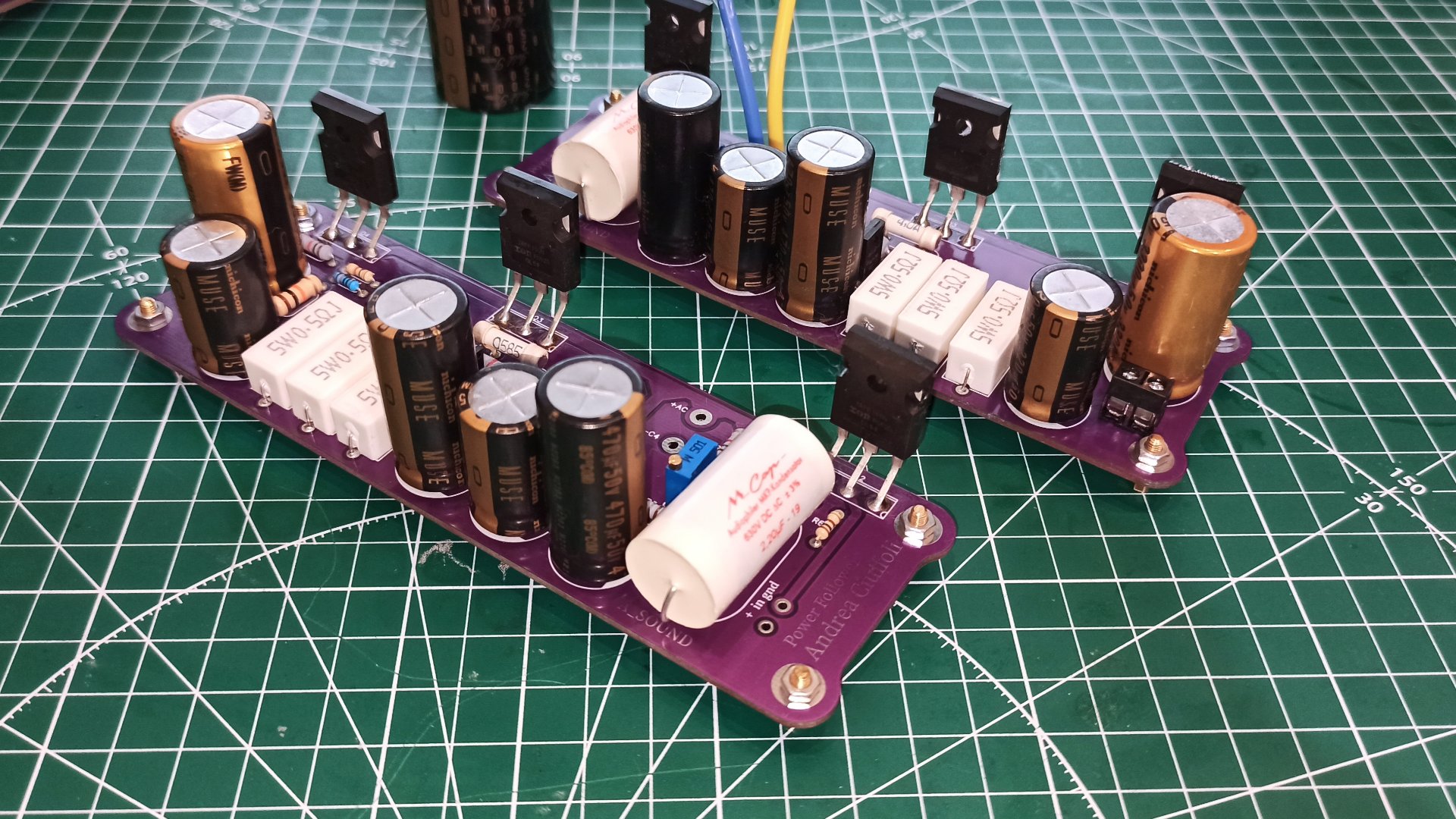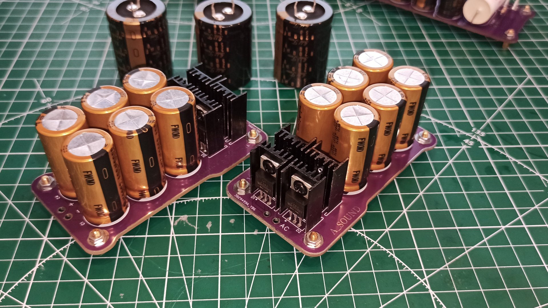 Неспеша спаял часть модулей, остается заказать модуль задержки включения АС. Но тут я не знаю как сделать правильно, а именно. Ставить реле до выходного электролита или после?