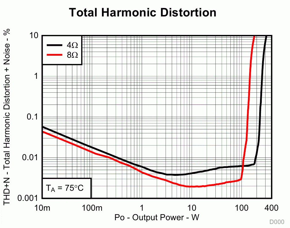 У TPA32** есть неприятный момент. В отличии от классов А и AB, в которых при снижении мощности снижаются и искажения, тут они наоборот растут.