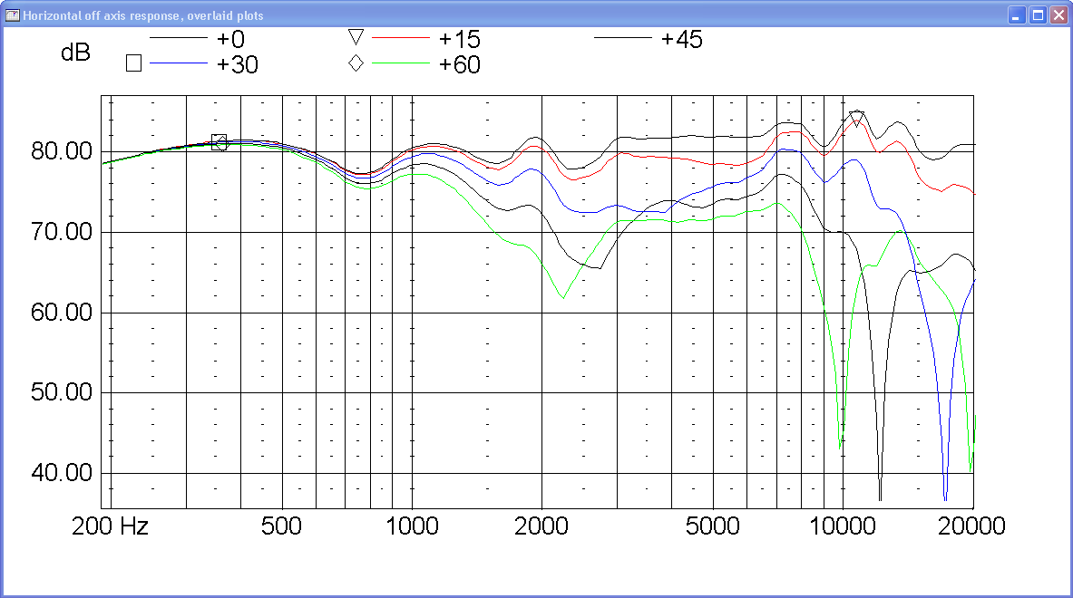С осевой АЧХ и под углом в 15° всё нормально. А вот под более острыми углами видно, как начиная герц с 500, валится АЧХ 4А-28. Т.е. делить его желательно на 1-1,5кГц.