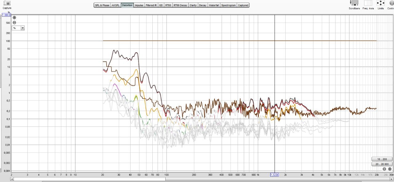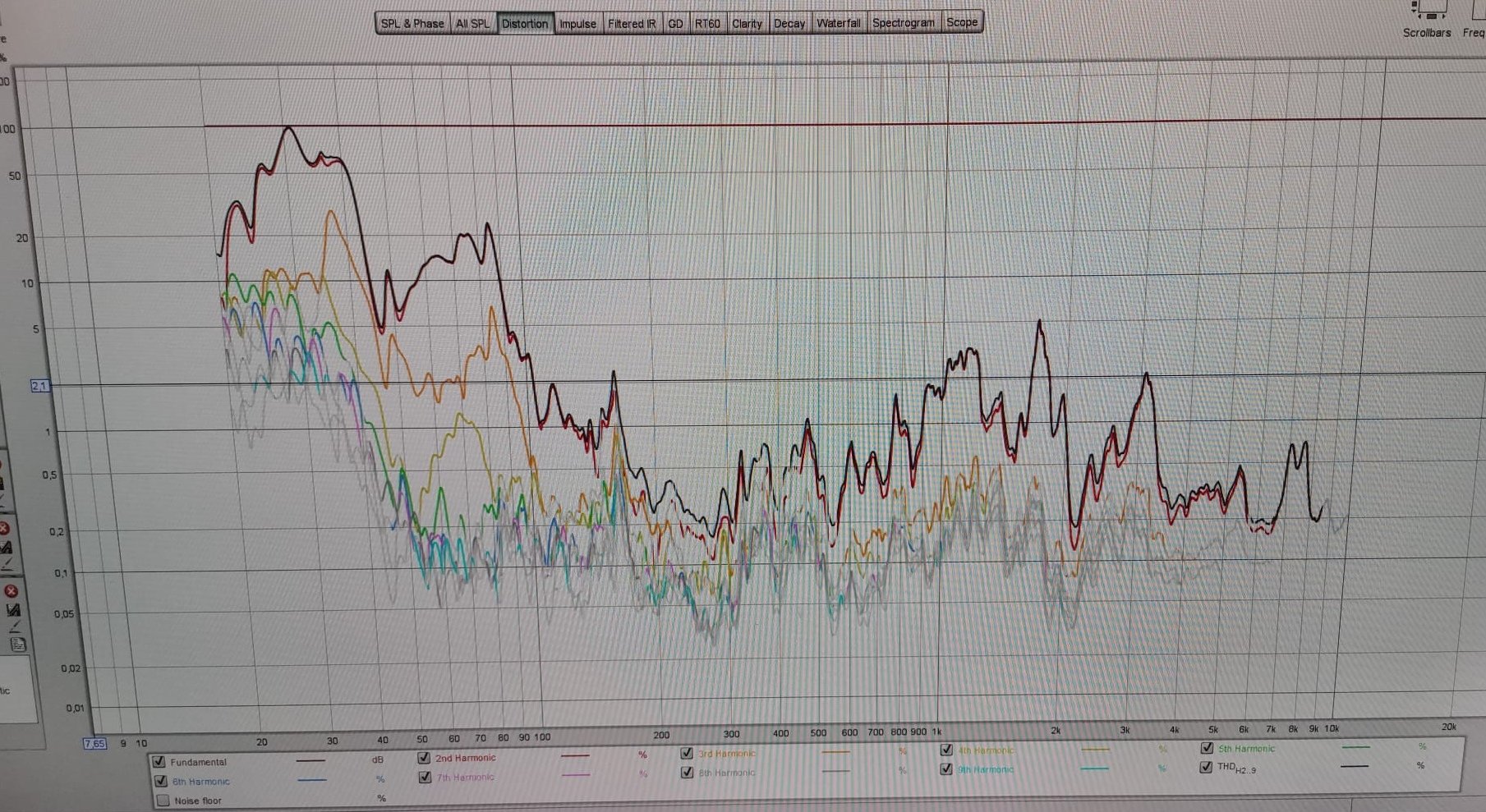 Искажения 1 динамика в 5 раз выше, группа при этом укладывается в 1%.