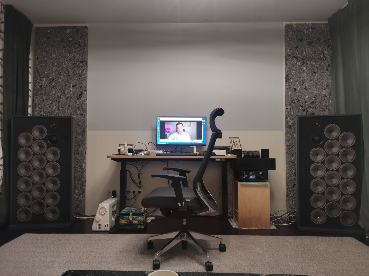 Где то уже писал, что самая большая боль, стена за головой. Несмотря на мягкую мебель и ковёр, в какой то мере поглощающий ВЧ, отражёнка на СЧ существенная. Проявляется в виде интерференционного провала в районе килогерца. Самая чувствительная область. На слух, звук становиться менее ярким.