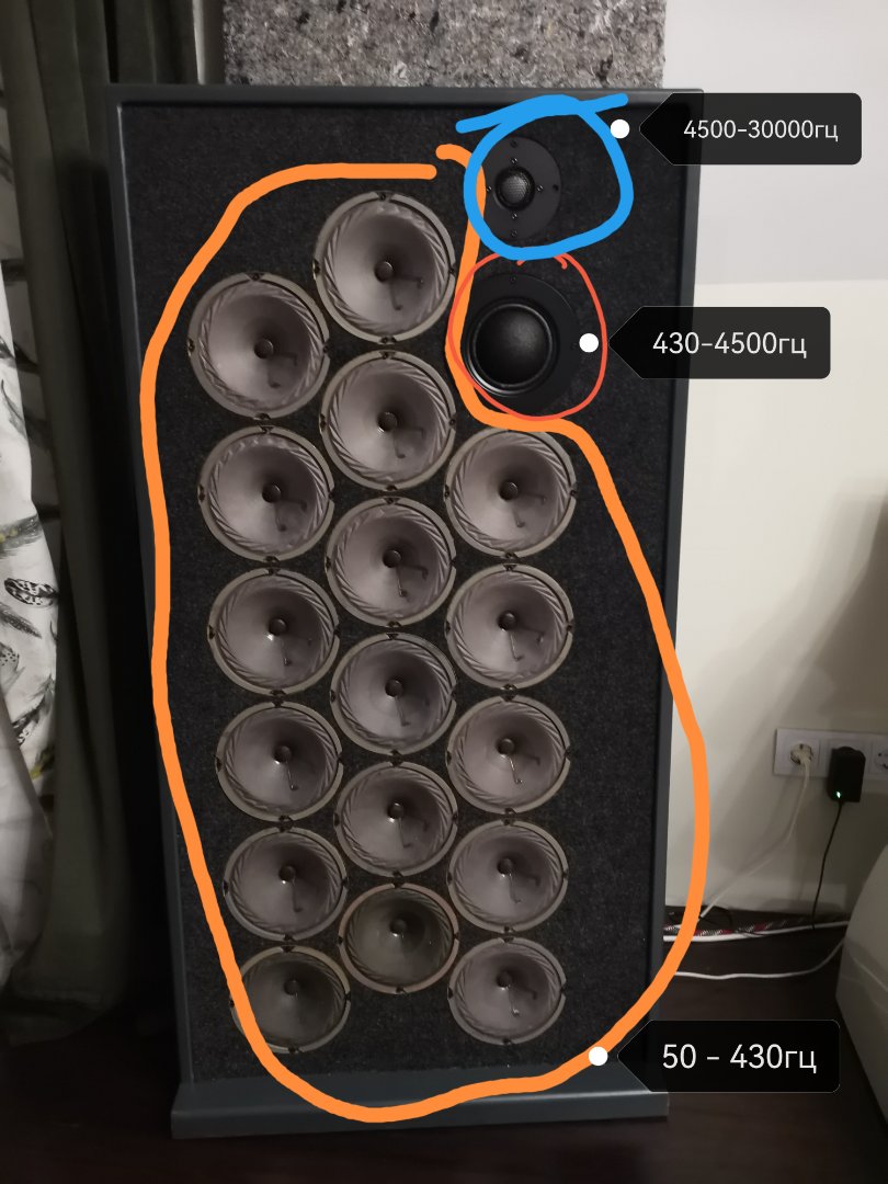 Конкретно цих 17шт 5ГДН4, по площі як 4 12ки приблизно, але лінійний хід 1мм, чи скільки? В нормального 12го про мідбаса 5-7мм лінійний хід, плюс сучасна оптимізована магнитна система, демудоляційні кільця і інше. Виходить що 1 12ка динамічно цікавіша за весь той масив.