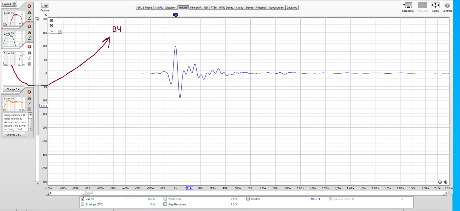 Ну вот открыл файл с замерами ачх, можно глянуть ачх каждой полосы. Ну и импульс, если это интересно.