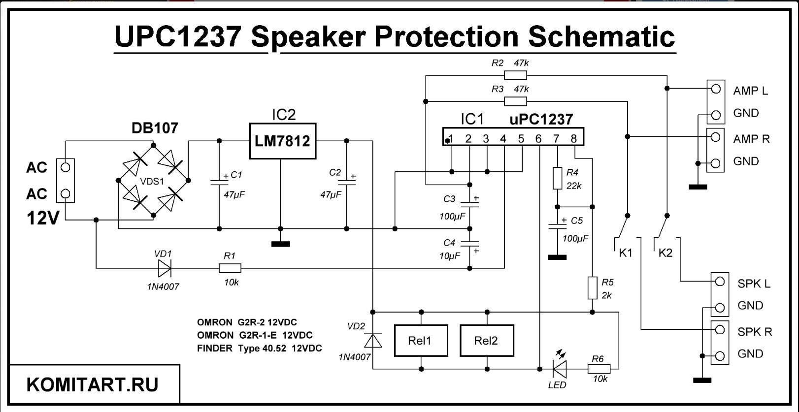 Для новачків публікую тут правильну схему захисту АС для підсилювачів класу А і АВ. Схема перевірена та робоча на 100%.