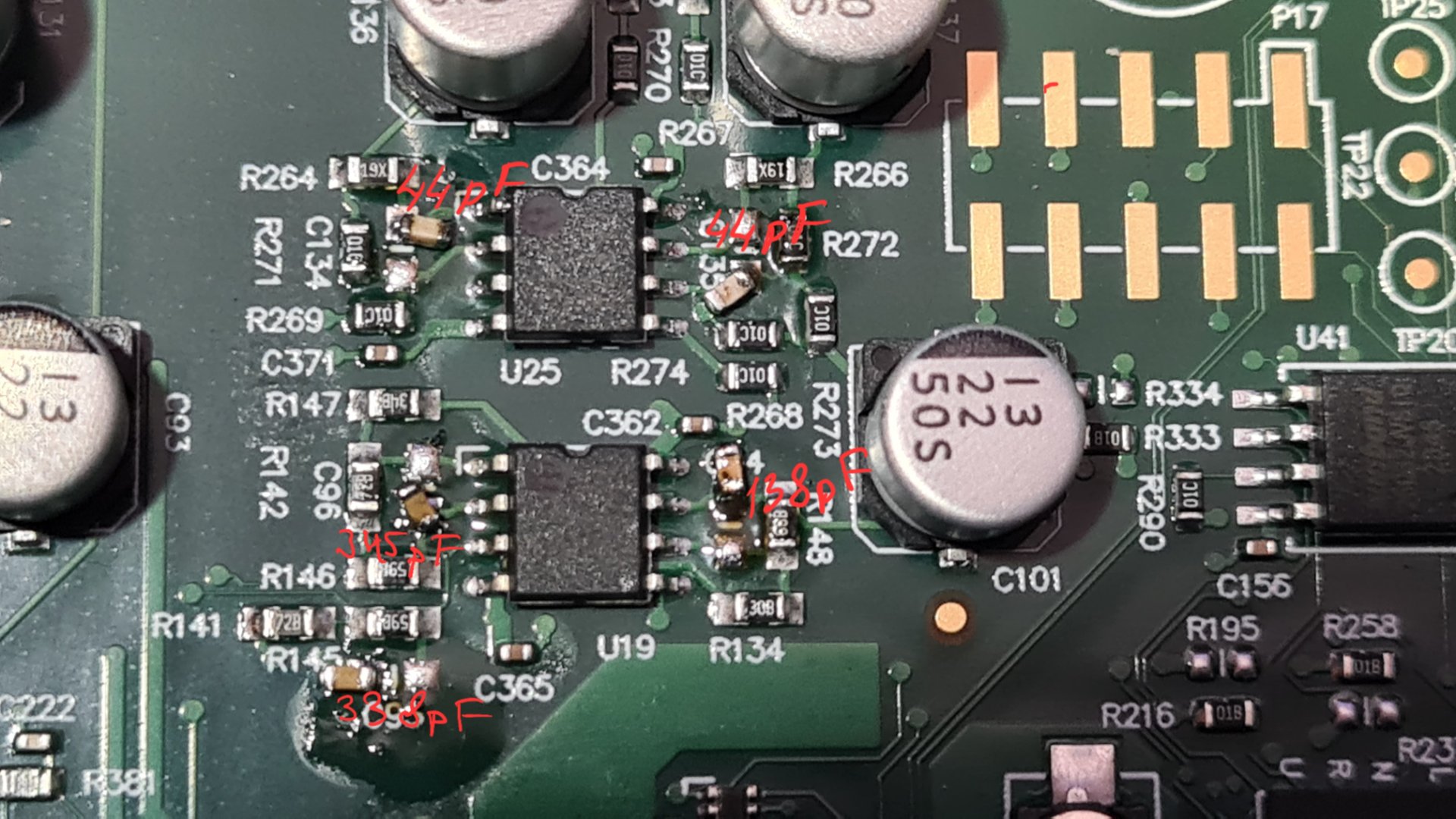 - не меняйте ОУ, пока не поменяете конденсаторы и не сделаете повторное измерение, так как ОУ могут быть не фейковые.