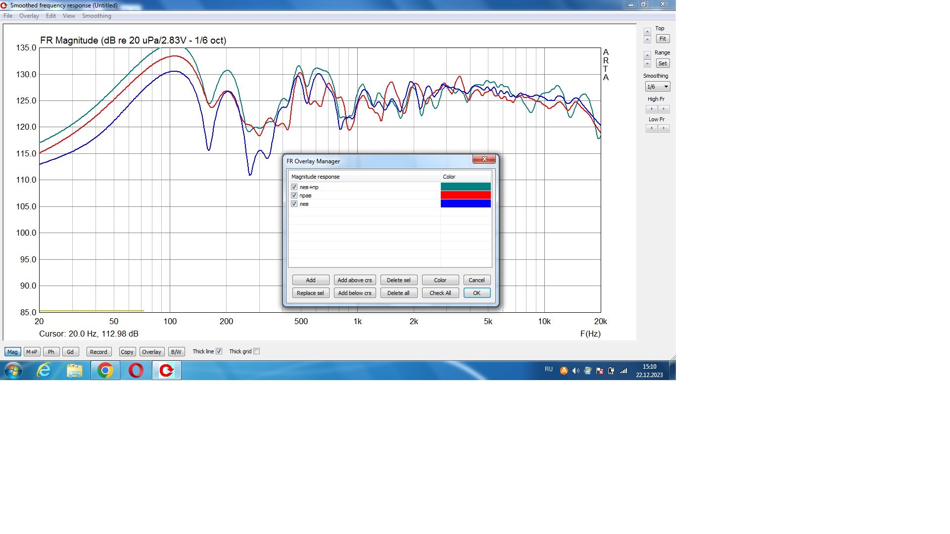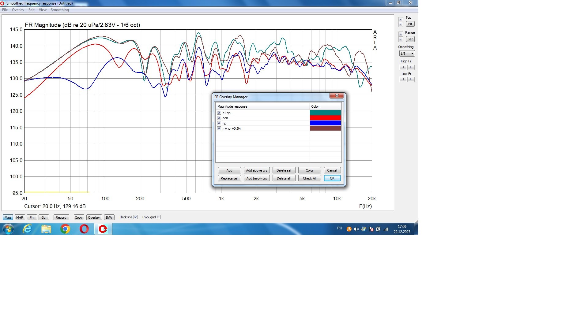 Разберётесь, там интуитивно понятный интерфейс. Тем более я вам давал ссылку на видео как человек делает коррекцию АЧХ с помощью REW И АРО. Тут главное перебороть лень и сомнения и сделать коррекцию АЧХ, я уверен что коррекция вас не оставит равнодушным к этому пути. Тут главное начать, а далее уже искать свою АЧХ которая вам больше нравится. Я уже писал что в АРО можно подгружать несколько корректирующих АЧХ и на горячую их переключать, что по сути позволяет методом перебора найти более оптимальную АЧХ под свой вкус, и даже сделать несколько АЧХ под разный жанр музыки если есть в этом необходимость. Выжимать необходимую АЧХ только из железа, это очень сложно и накладно, наиболее простой путь это выровнять АЧХ электрически, да, это не даст идеала, но это даст куда лучший результат чем если пытаться это сделать только со стороны железа. Само собой, нужно учитывать возможности железа, к примеру не перегружать динамик по линейному ходу катушки что приводит к неоправданному росту гармоник, но это проблема больше НЧ диапазона, хотя можно и ВЧ динамик перегрузить заставив его работать ниже той частоты на которую он рассчитан. Вообще частоту раздела динамиков нужно выбирать на основе измерений и далее уже сводить полосы и уж потом переходить к коррекции, я надеюсь вы не сильно низко порезали ВЧ динамк и не сильно высоко загнали НЧ динамик в верх по частоте. Ну в общем делайте коррекцию, покажите результат и опишите свои ощущения, а там потом будет виднее....iguana64 писал(а): 22 дек 2023, 21:27 To uriy, благодарю за совет, не совсем все понятно но попробую разобраться как появится время.Надеюсь разберусь.