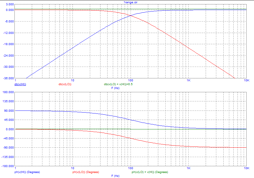 Но есть пути решить эту проблему и в трёх полоске, правда нужно применять активное деление полос, которое не крутит фазу на частоте деления полос, и вот тогда трёхполоска будет вести себя как ширик, только как очень крутой ширик, ширик который держит АЧХ ровной в диапазоне 40-20000Гц.