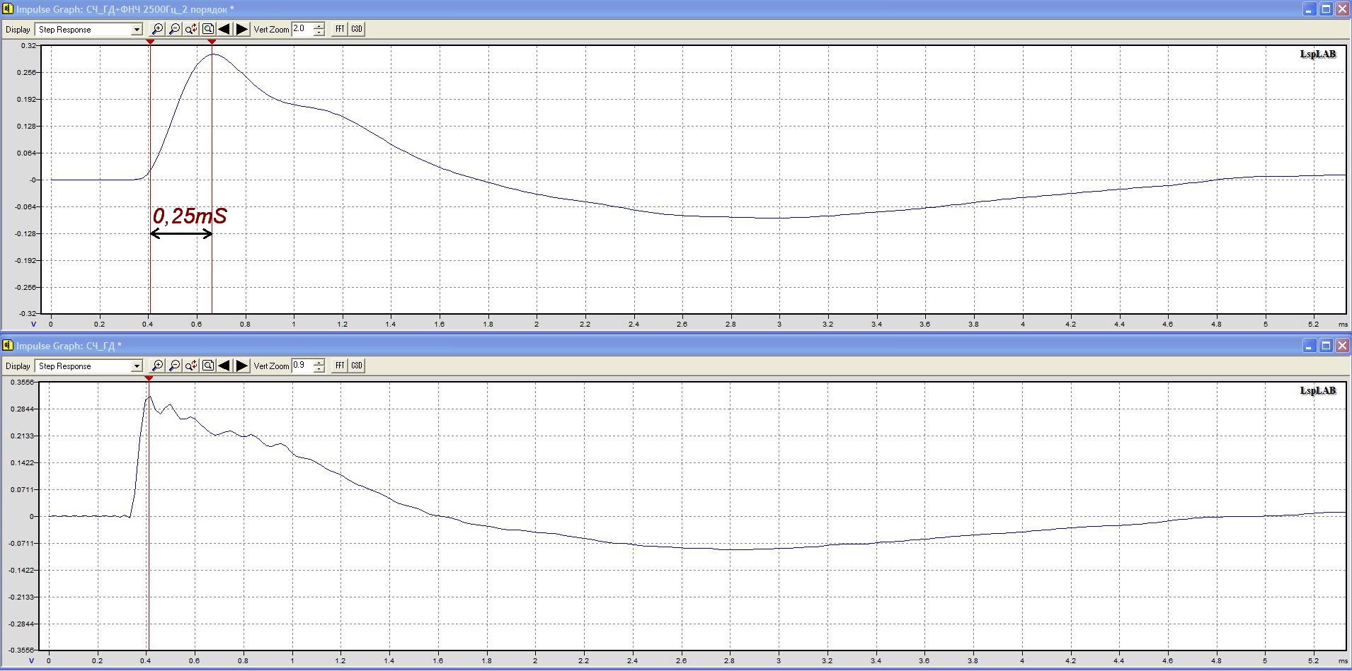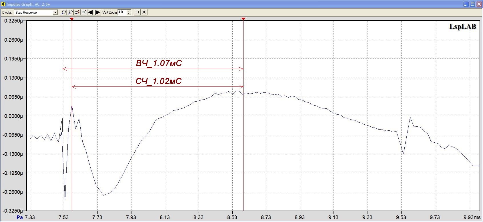А вот и степ с места прослушивания Возможно будет лучше, если сдвинуть ближе к началу НЧ, на 0,5мС.