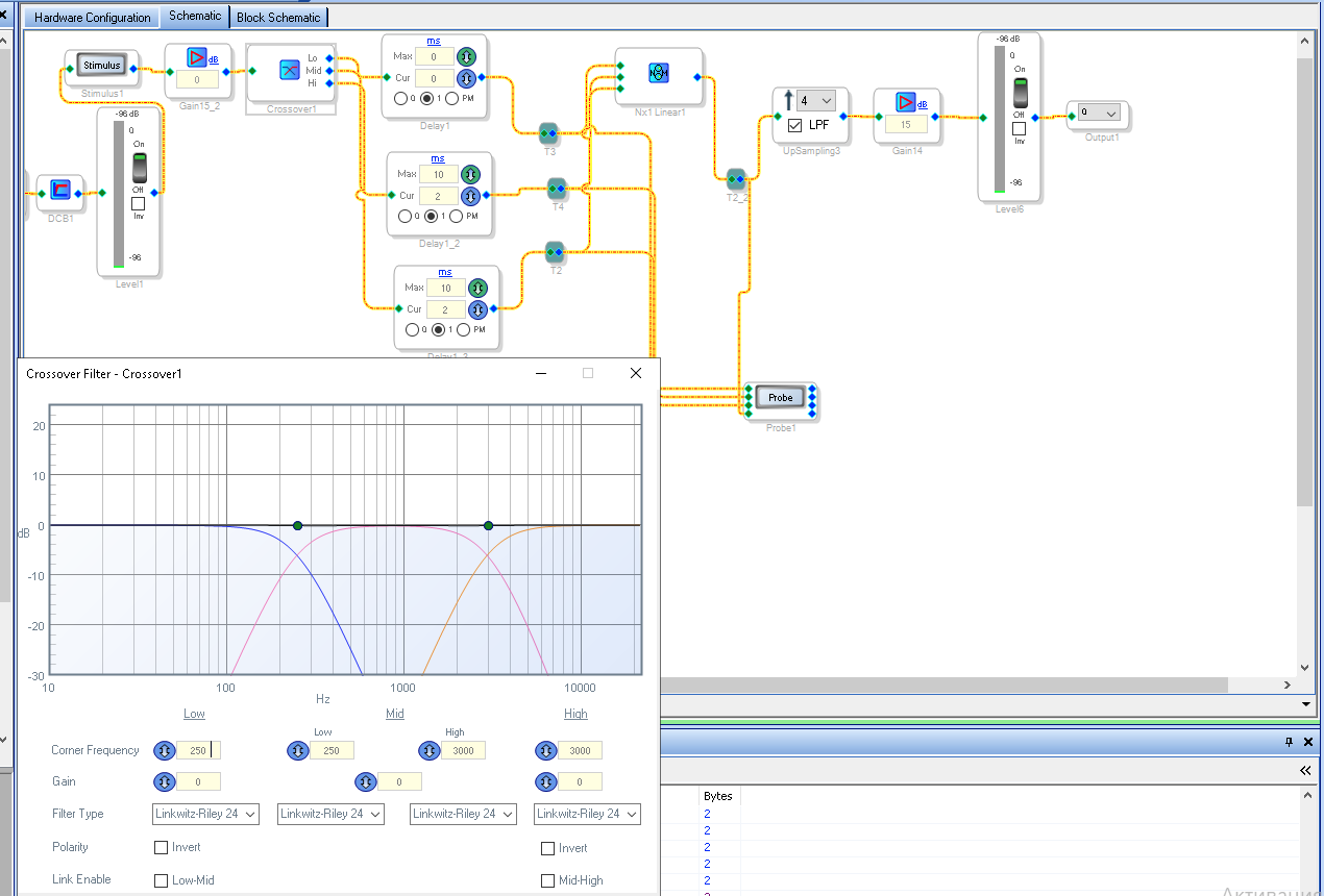 Конкретно, кроссовер с пассивным фильтром второго порядка и кроссовер SigmaStudio.