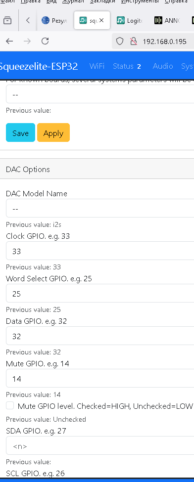 В этой теме в конце там есть видео и краткое описание как регистрировать есп32 в сети. Когда вы зайдёте на айпи squeezelite-esp32 то в закладке хардвеа настроите себе выходные порты.