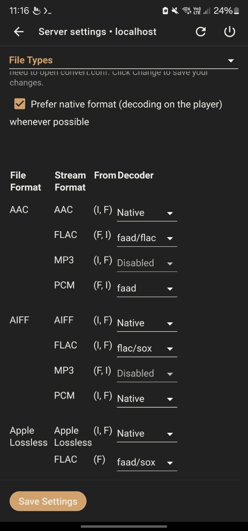 audiomaniac3 писал(а): 18 дек 2024, 23:38 Спасибо,а вы случайно не знаете в squuzelite есть какие-то настройки для максимального качества звука? Почему-то кстати я могу стримить поток только во flac формате,другие опции pcm wav не работают.