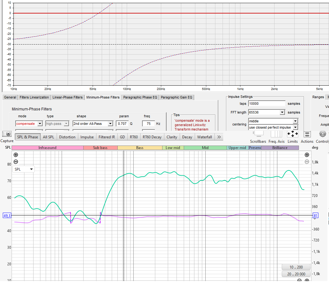 По-моему вы мне скидывали ссылку на канал где рассказывается как мерить и настраивать фазу через rephase,так вот,там довольно интересный ролик,про то что разрыв фазы на частоте настройки фазоинвертора,можно пофиксить компенсаторным обратным allpass фильтром,у моих edifier это 75 герц,добавил его,несколько раз мерил,не было,не было не единого разрыва.