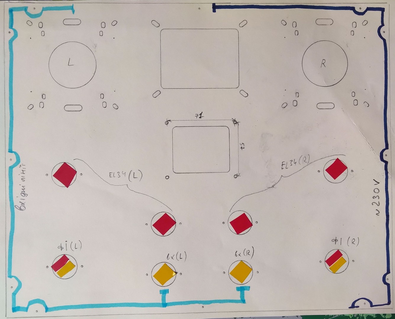 Зняв всі деталі і навіть лампові панельки так як режим "фанерки" закінчився. Вже получив нормальні резистори і конденсатори та заказав інші панельки, бо ці були зроблені із консервних банок. Я зразу на це не звернув уваги, міг би у китайця вернути гроші. Бо на його фото вони явно зроблені із товстішого металу. Викину дроселі і буду будувати анодне живлення на електронному дроселі. Для електролітів заказав ковпак для трансформатора, і в ньому їх розміщу (зовні). Залишилися на місці тільки трансформатори. Ось такі останні новини.